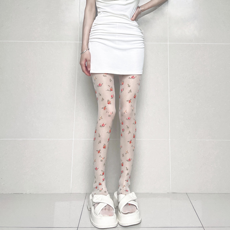 法式碎花丝袜lolita连裤袜甜美少女仙女软妹袜子小红花朵田园风潮