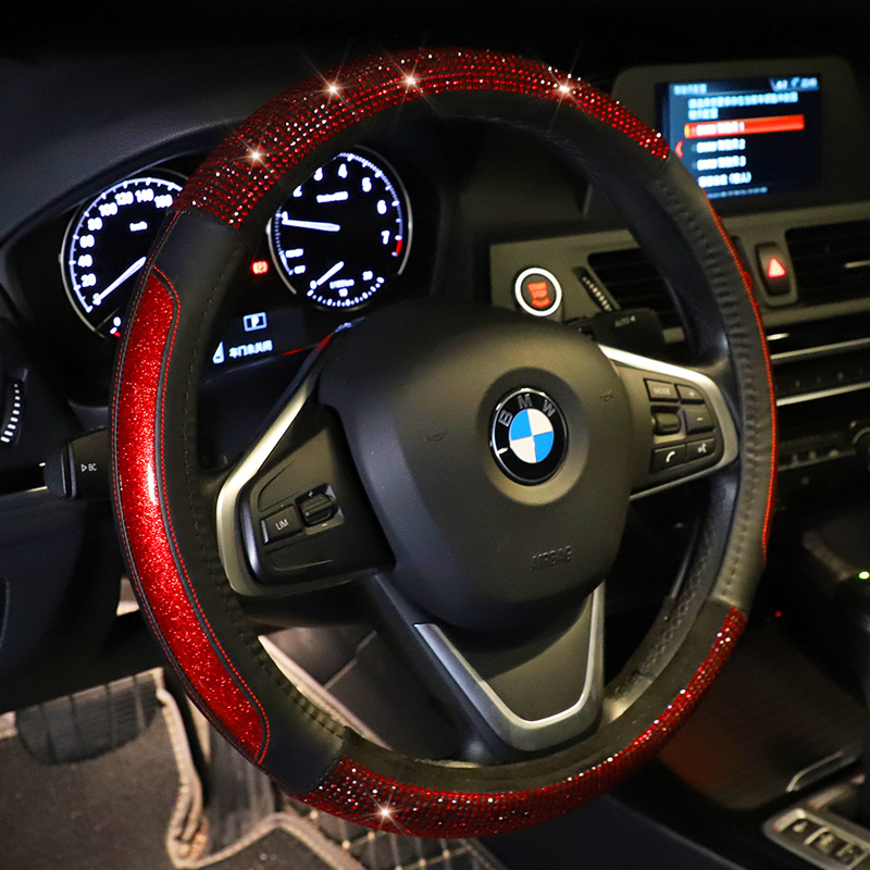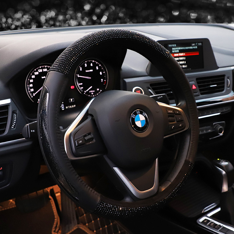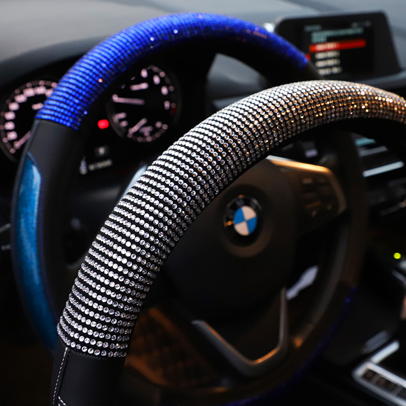 汽车方向盘套女款镶钻荧光四季通用大众奔驰宝马奥迪高级感车把套