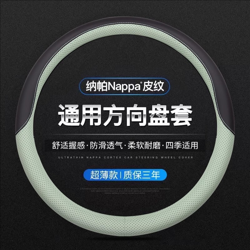 - 纳帕皮革方向盘套【圆形】黑绿色