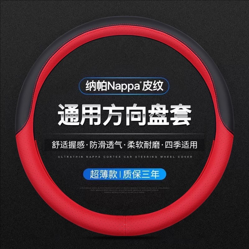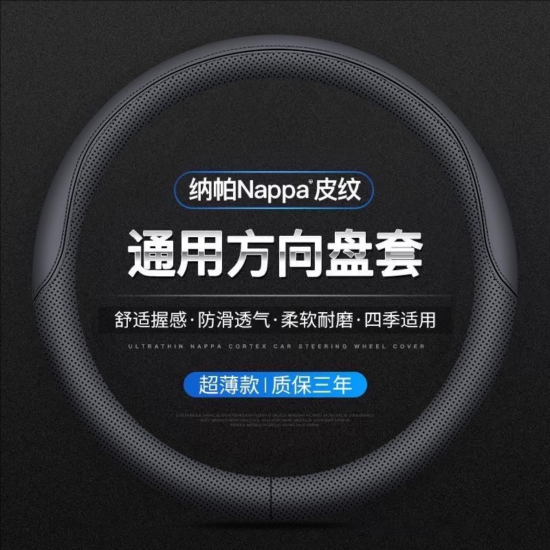 - 纳帕皮革方向盘套【圆形】黑灰色