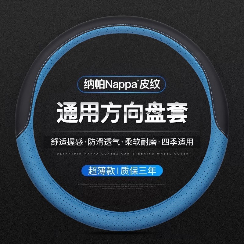 - 纳帕皮革方向盘套【圆形】黑蓝色