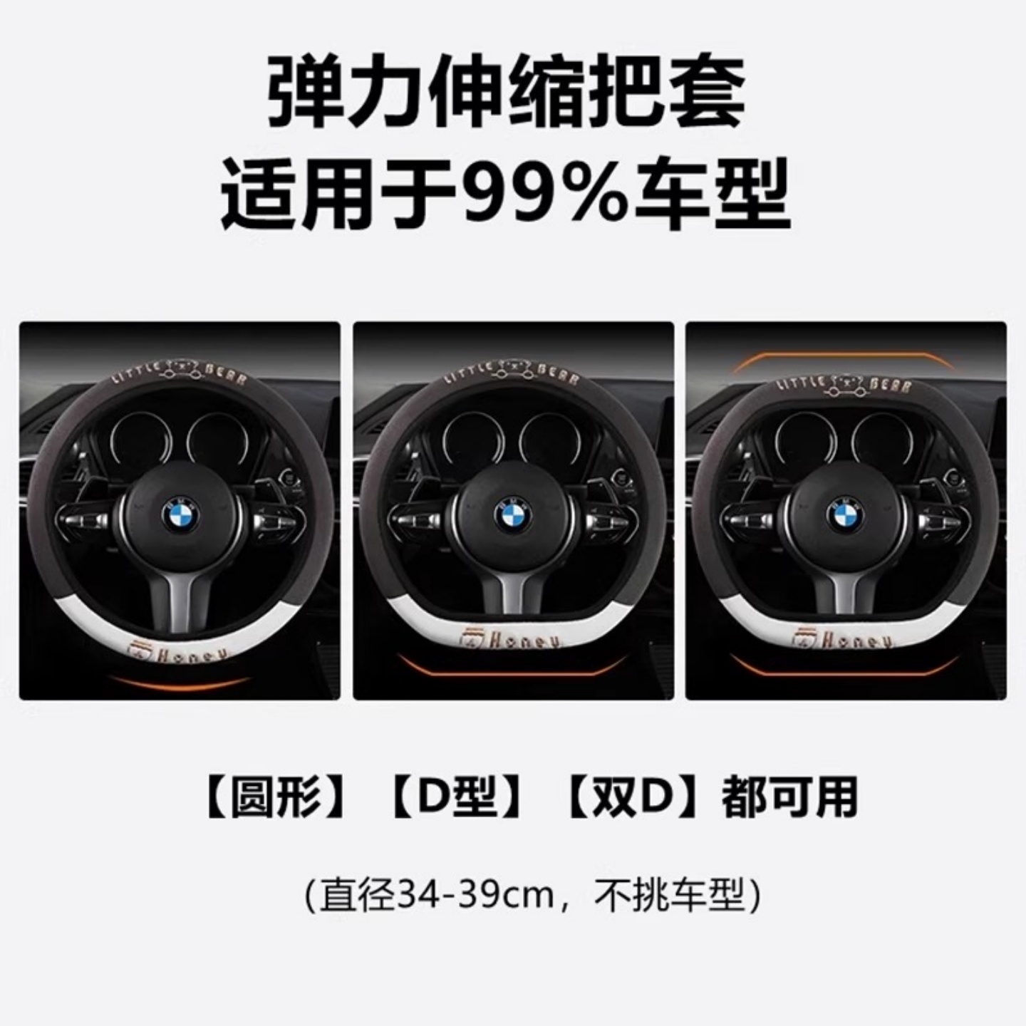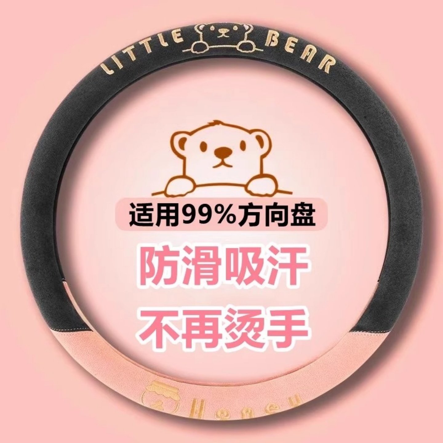 汽车方向盘套可爱刺绣夏季吸汗透气麂皮绒弹力把套不打滑四季通用