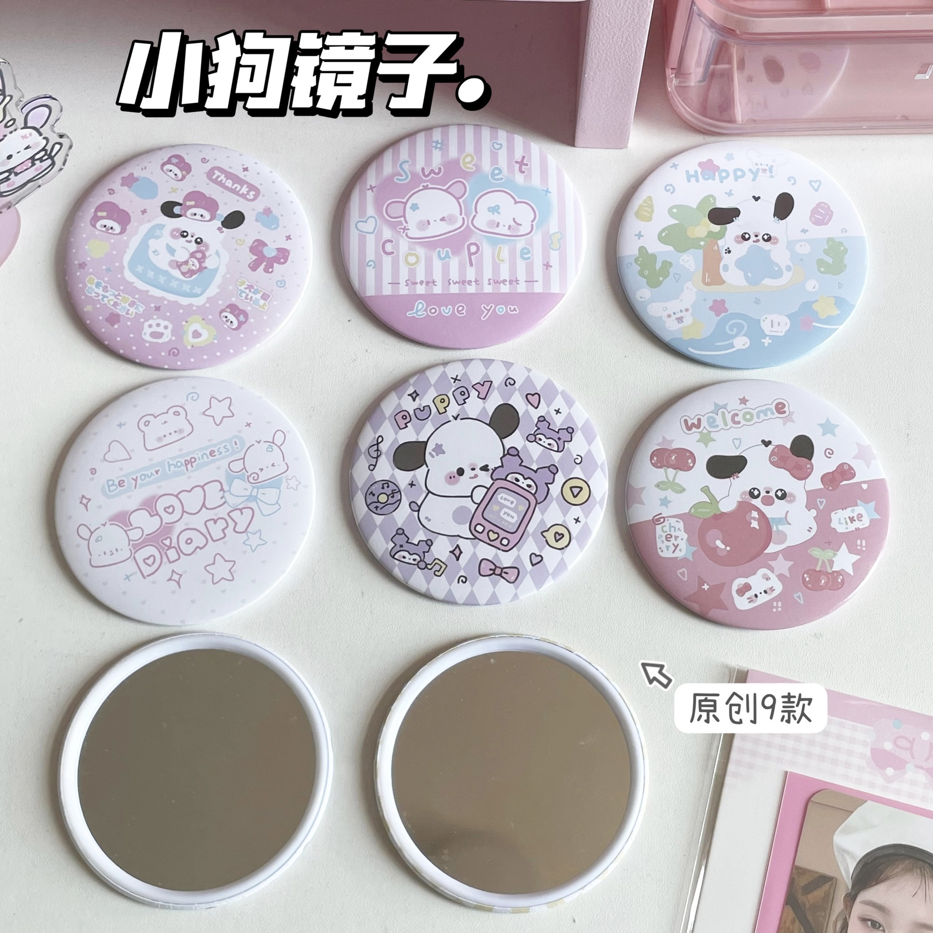 少女心原创ins卡通小狗迷你小圆镜便携随身镜学生化妆补妆小镜子