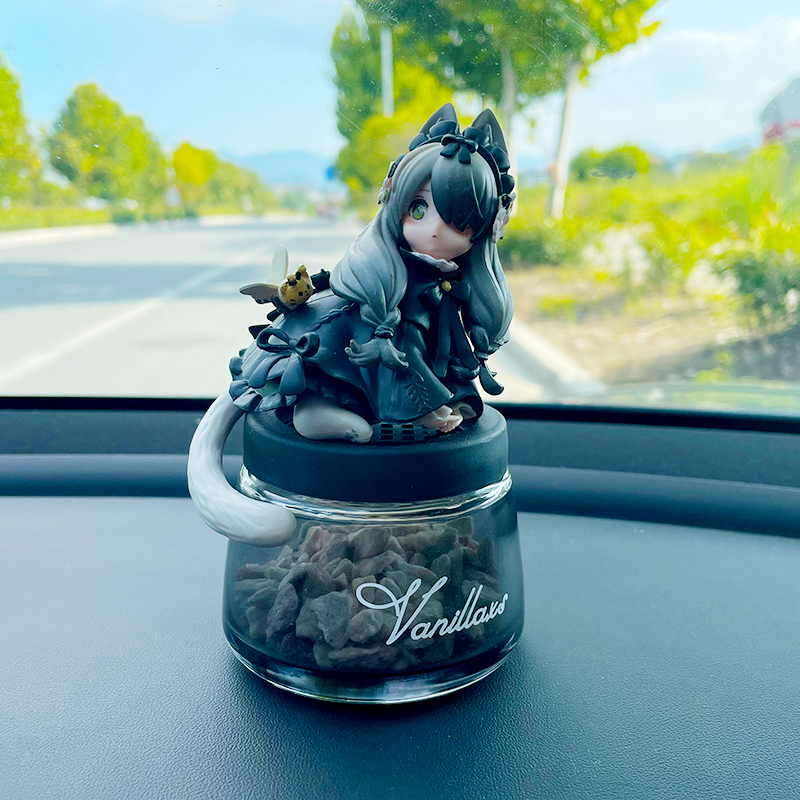 汽车摆件茶会猫屏幕可爱卡通女神款车载中控台动漫玩偶车内装饰品
