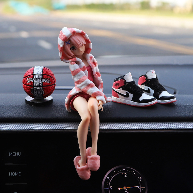 车载蕾姆手办车内饰品摆件中控台动漫美少女情侣创意车上篮球摆件