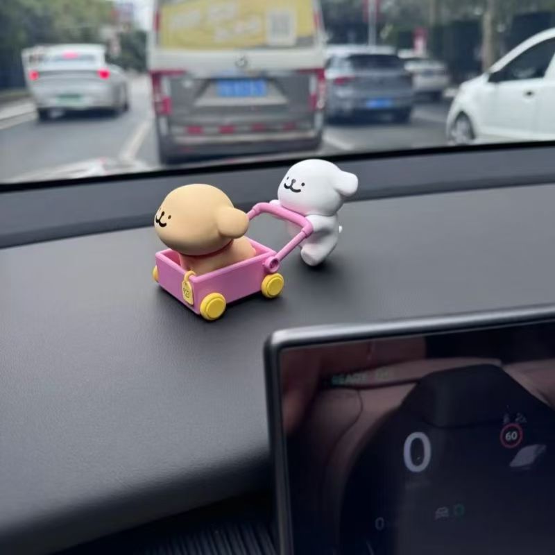 线条小狗汽车摆件车载中控仪表台装饰车内饰品女生可爱卡通公仔