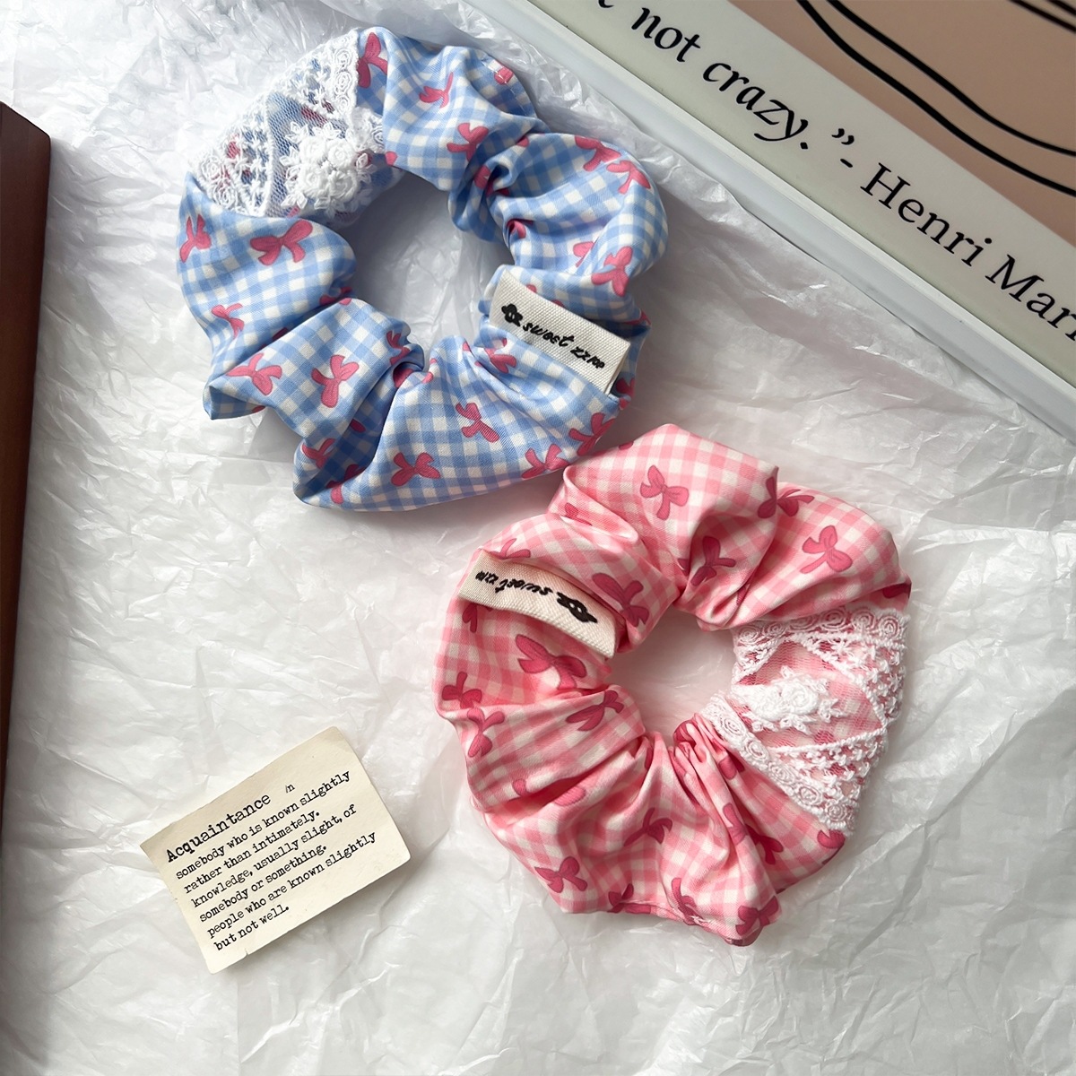 韩式甜美蝴蝶结蕾丝拼接头绳发饰女高级感手工布艺大肠发圈