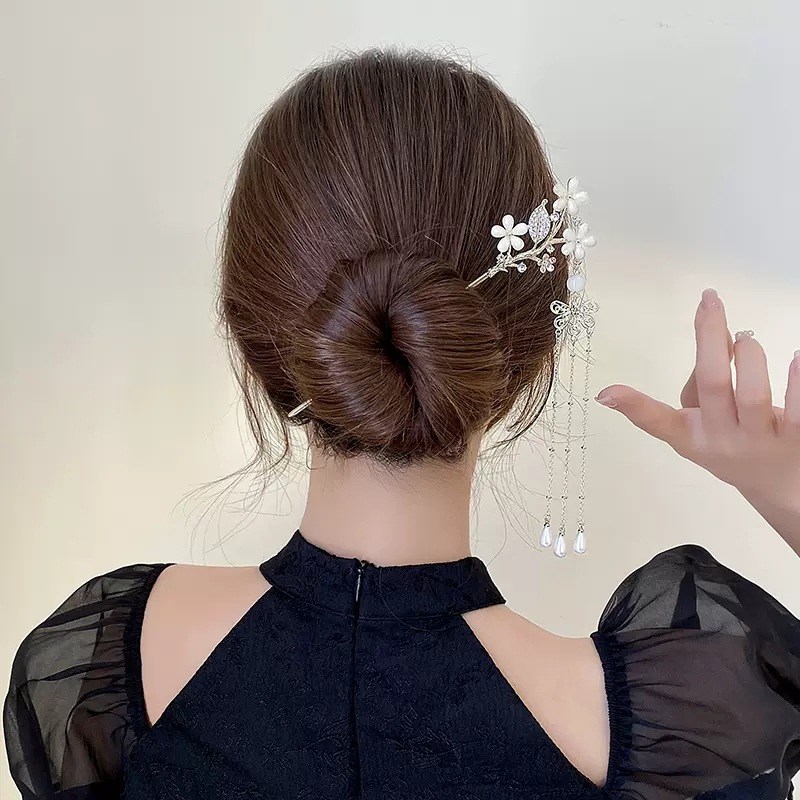 高级感古风花朵发簪汉服流苏步摇气质发钗国风新中式盘发簪子头饰