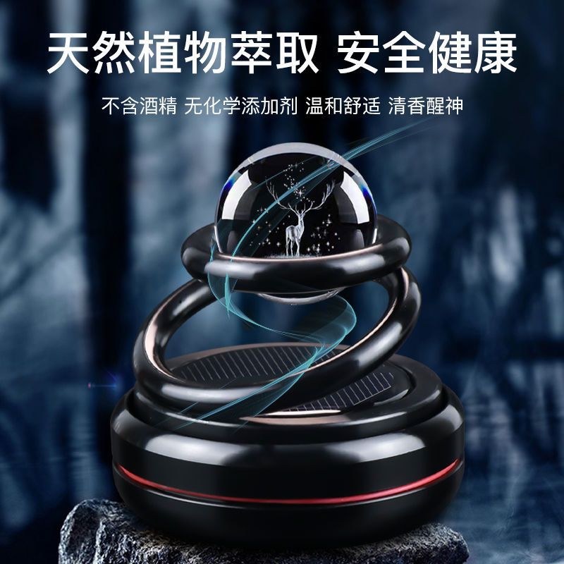 车载香薰香水太阳能双环旋转车内除异味中控台装饰品男士摆件