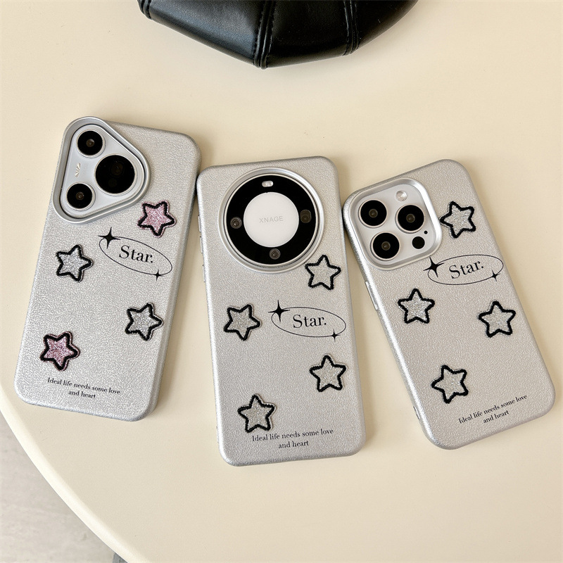 日韩刺绣星星适用mate60pro+手机壳P70Pro情侣pura70Ultra保护套