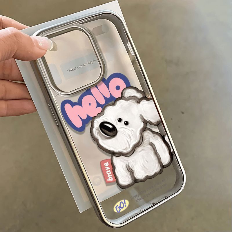 英文扭头小狗适用于苹果15pro手机壳14promax软胶13p新款12潮7/8P