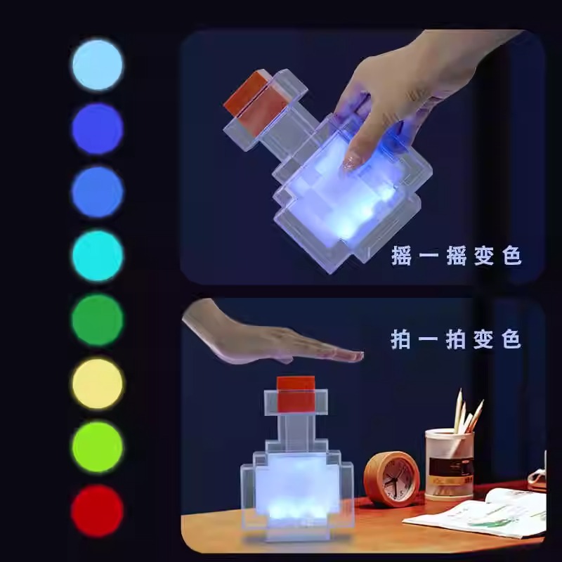 Minecraft我的世界变色药水瓶模型夜灯火把矿灯变色杯MC周边玩具