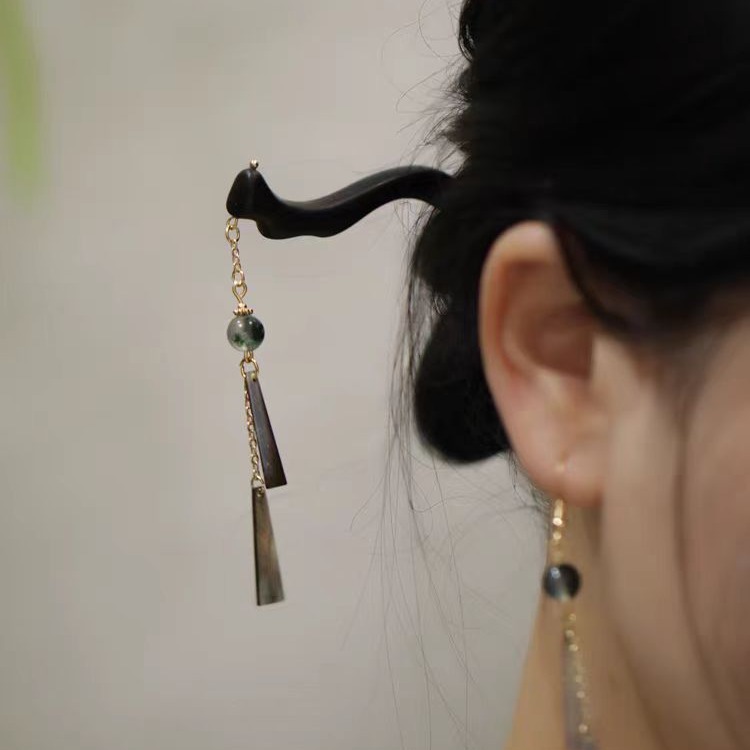 清冷感~ 黑色新中式黑色贝壳发簪檀木木质盘发发饰高级感头饰小众