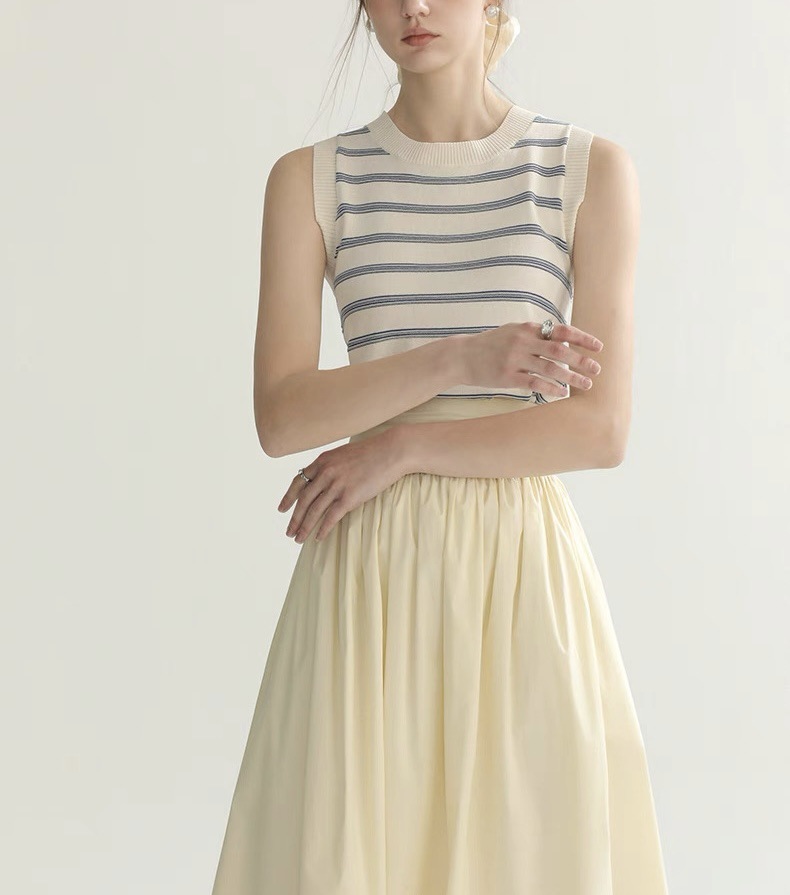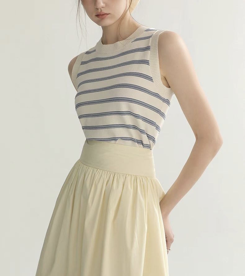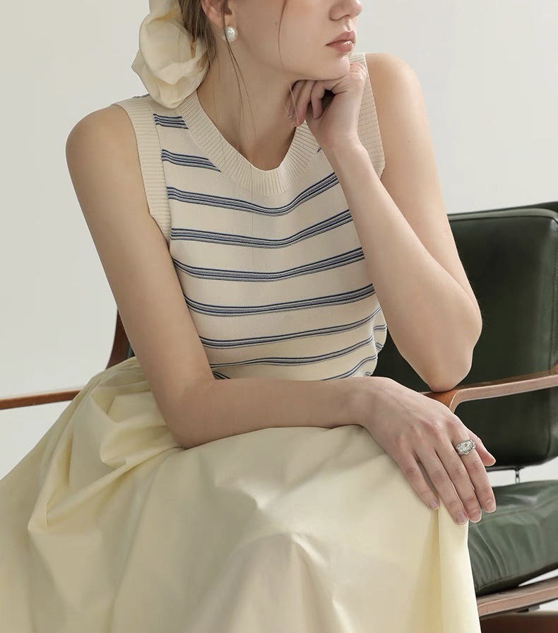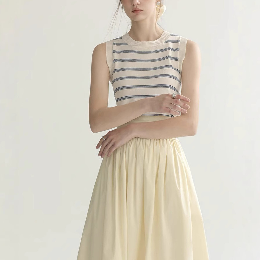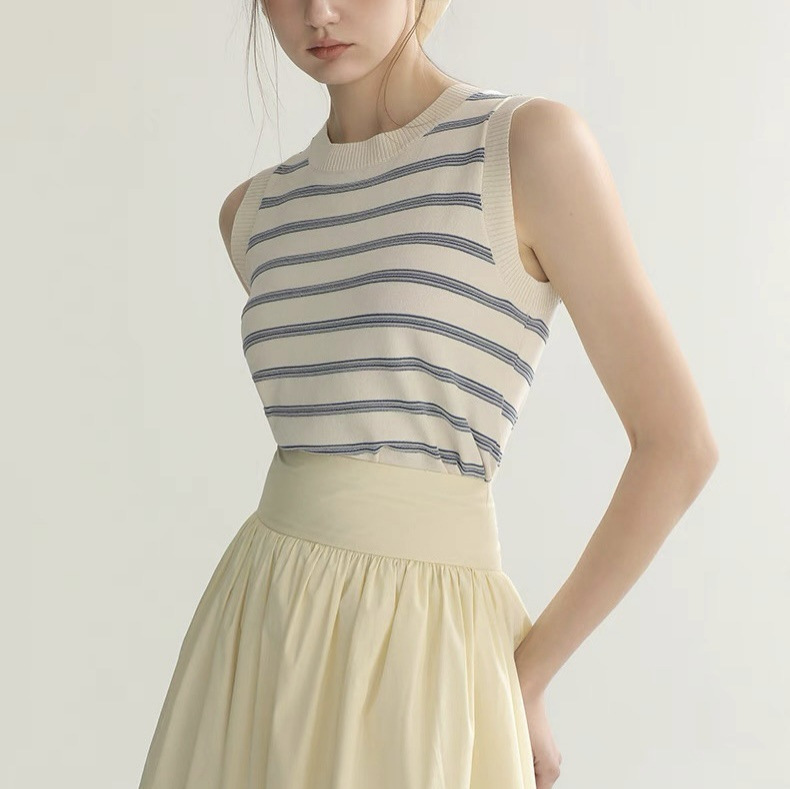 法式工字吊带背心无袖上衣内搭条纹短款外穿针织打底衫女