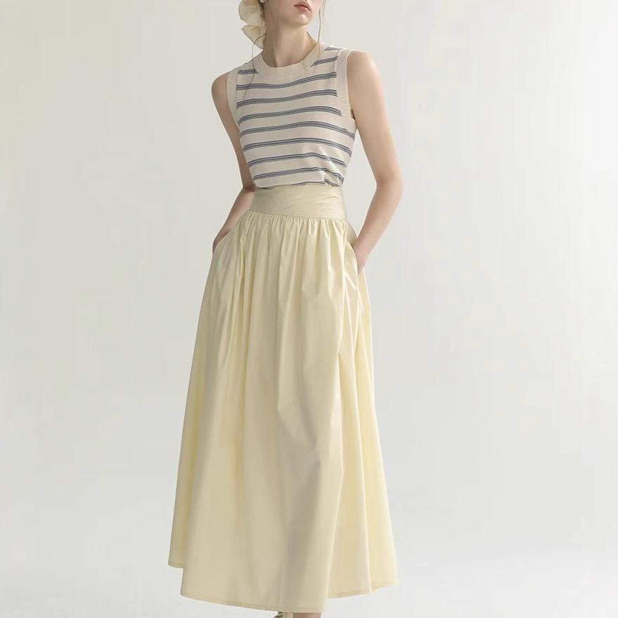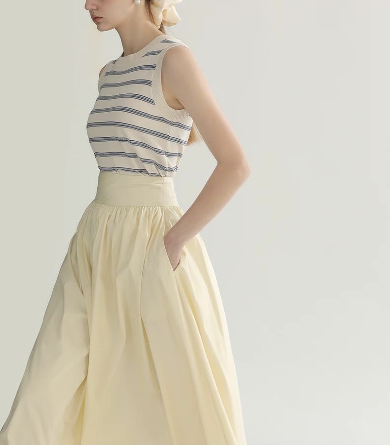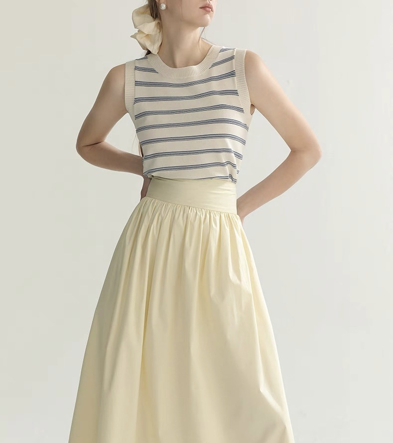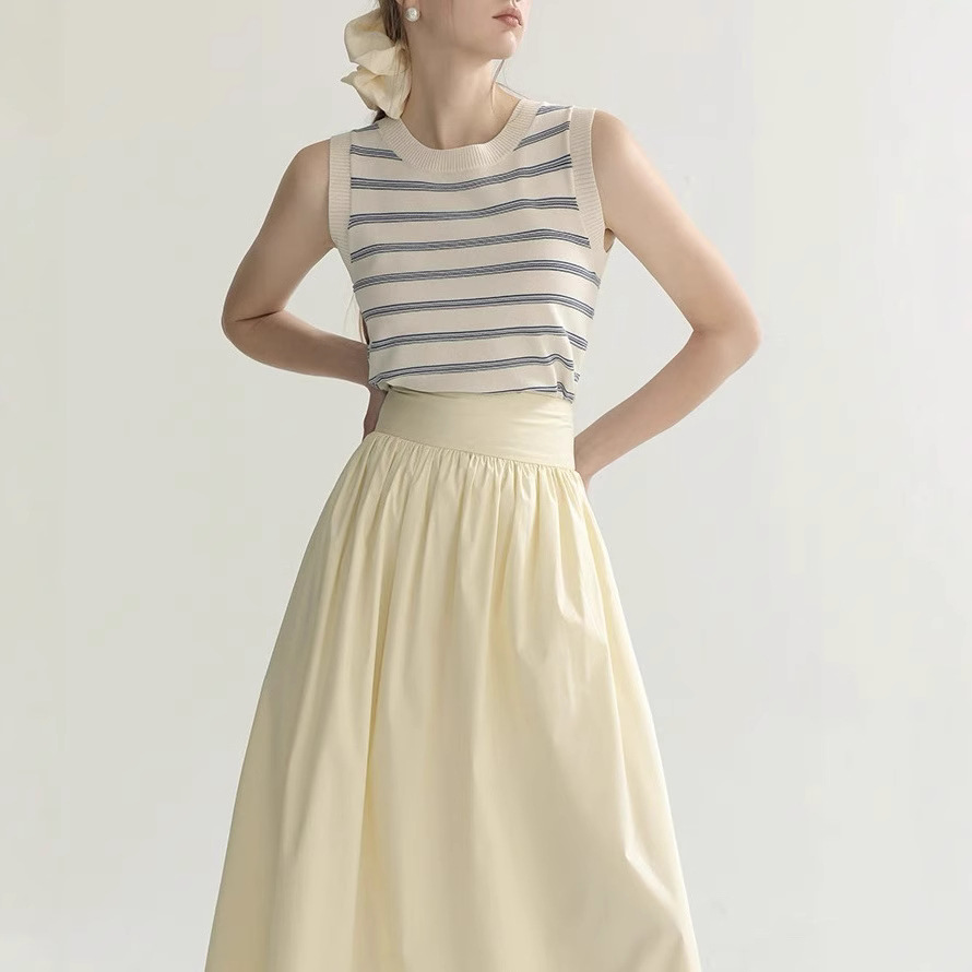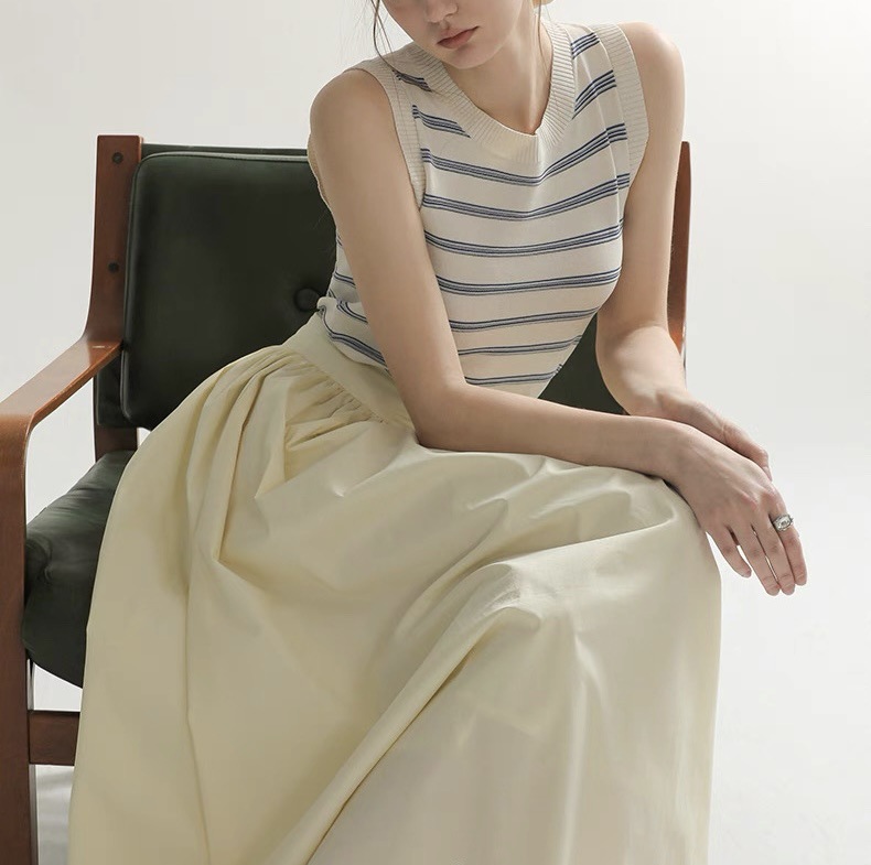 法式工字吊带背心无袖上衣内搭条纹短款外穿针织打底衫女