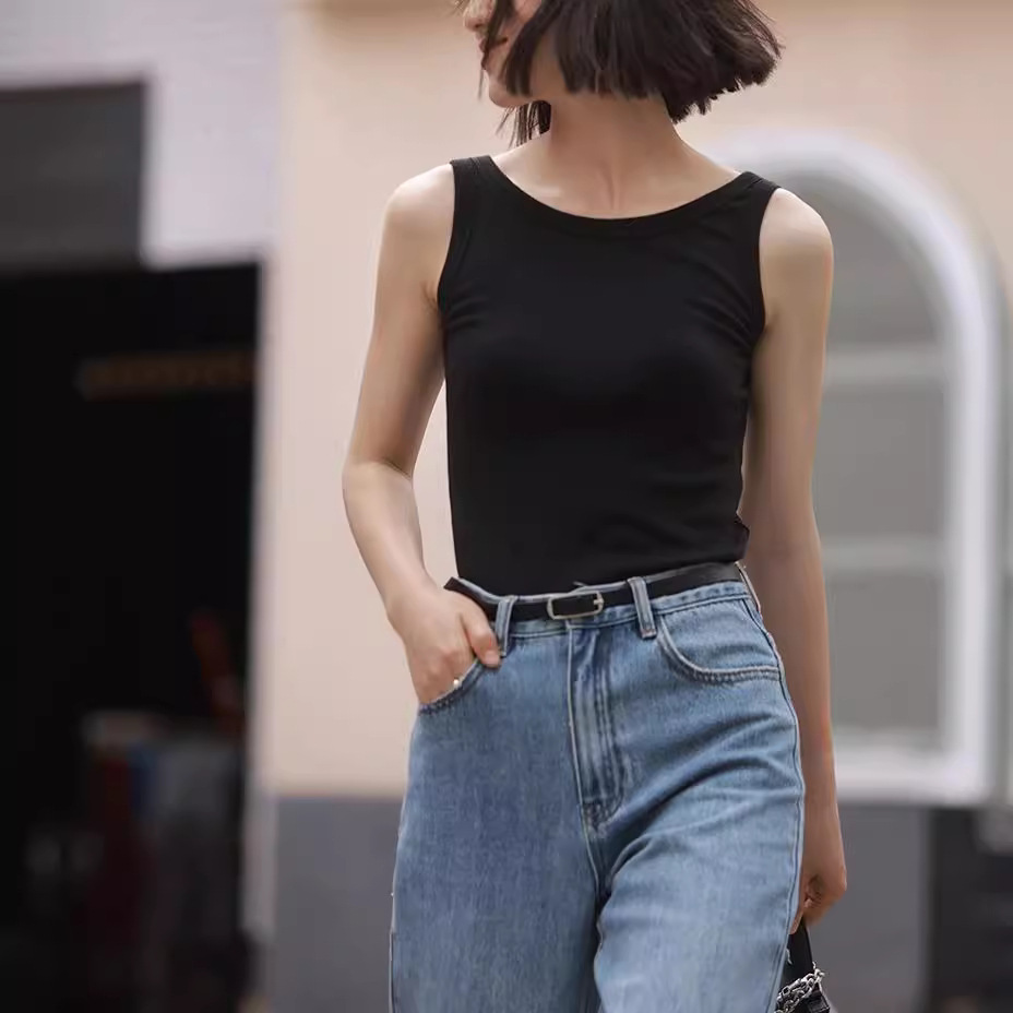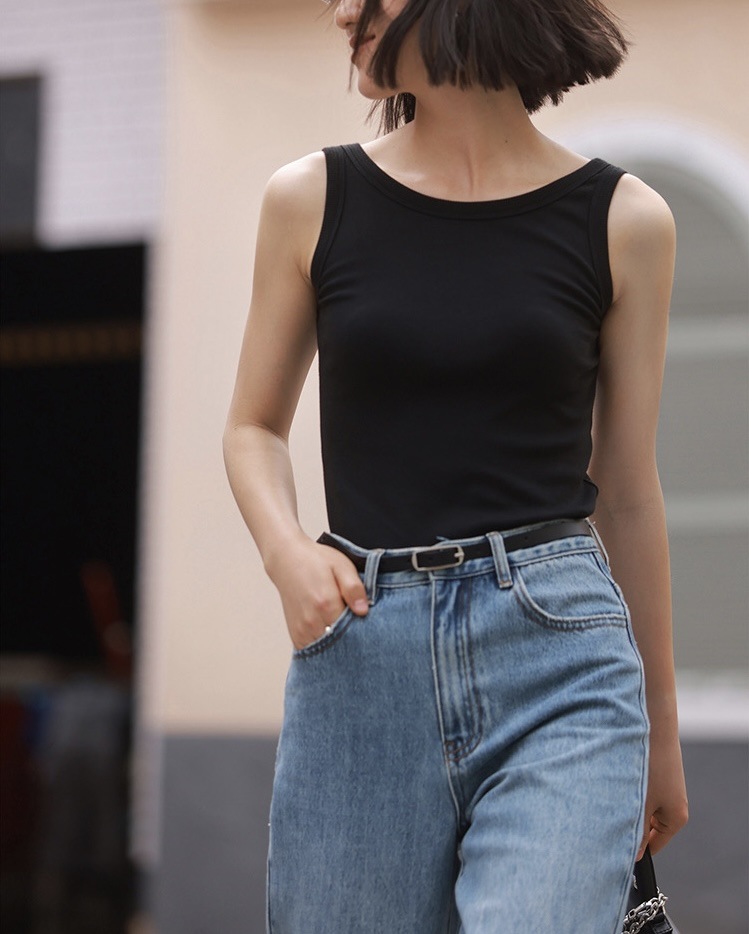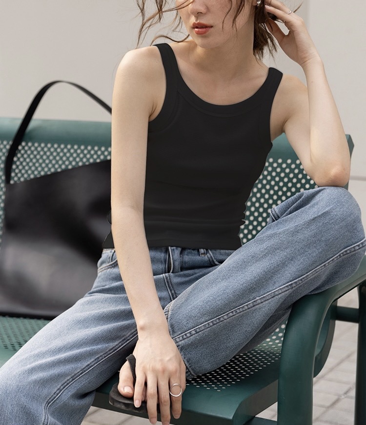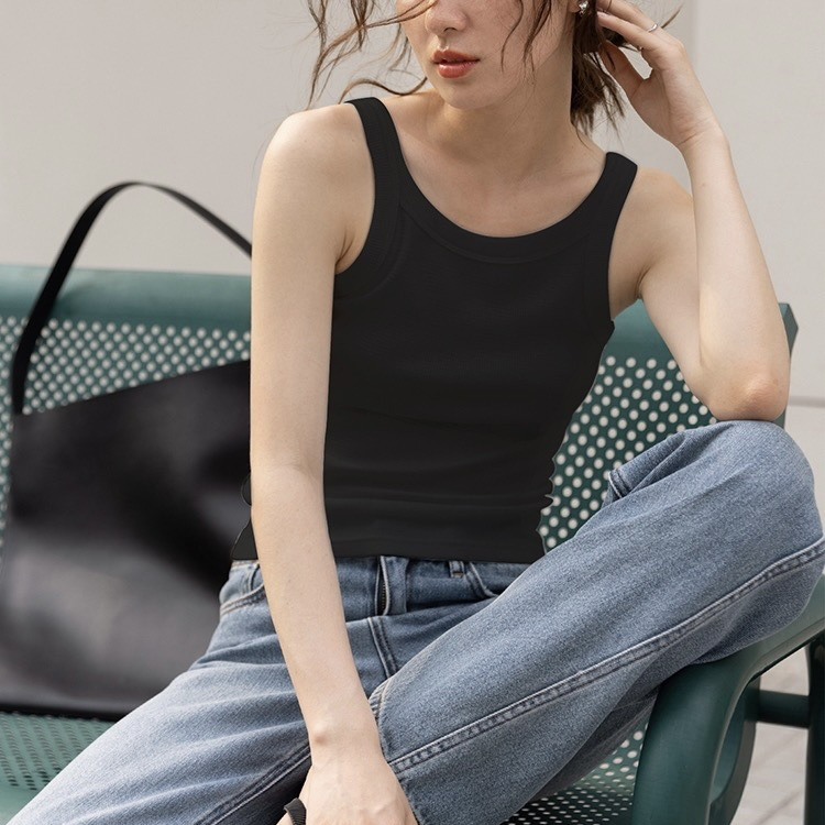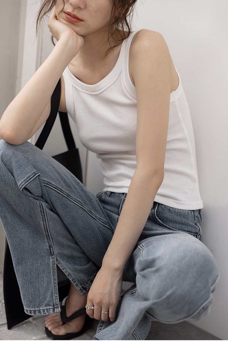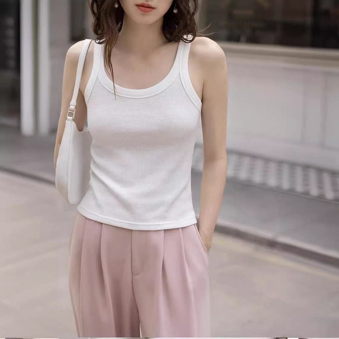 1313基础万能搭显瘦遮副ru华夫格肌理U字领弹力短背心