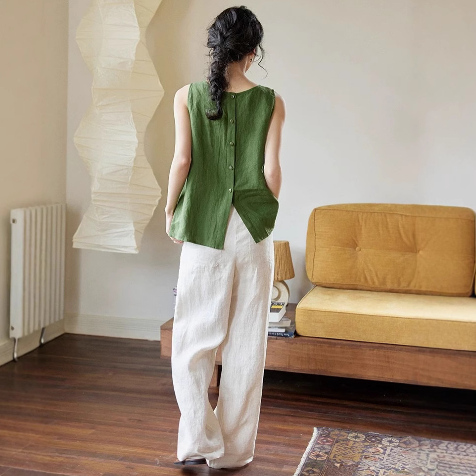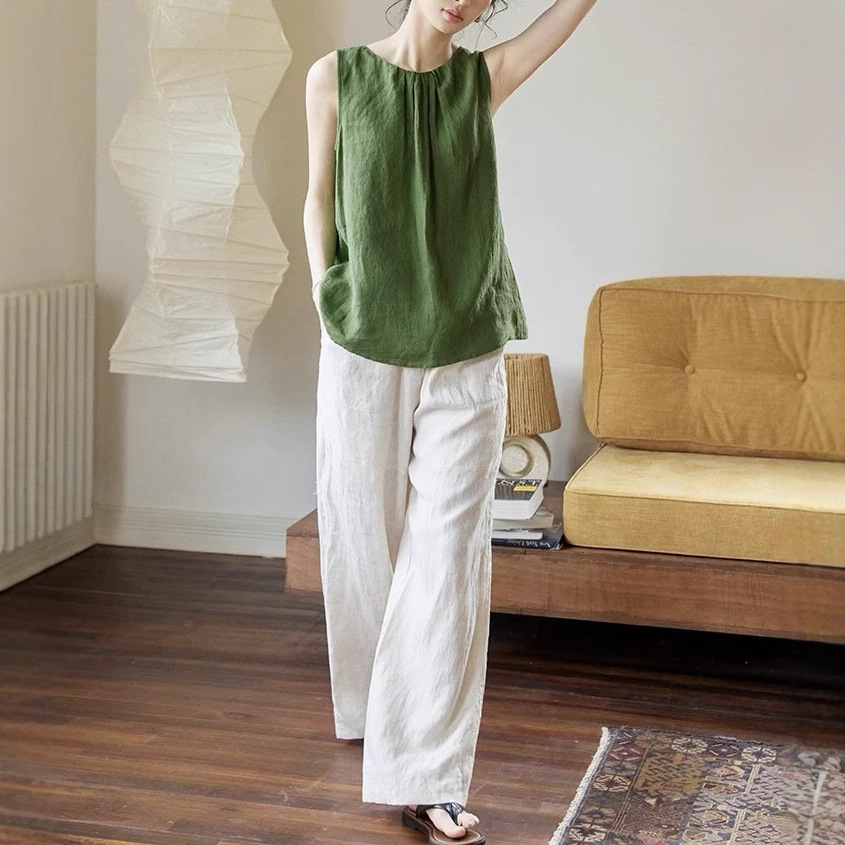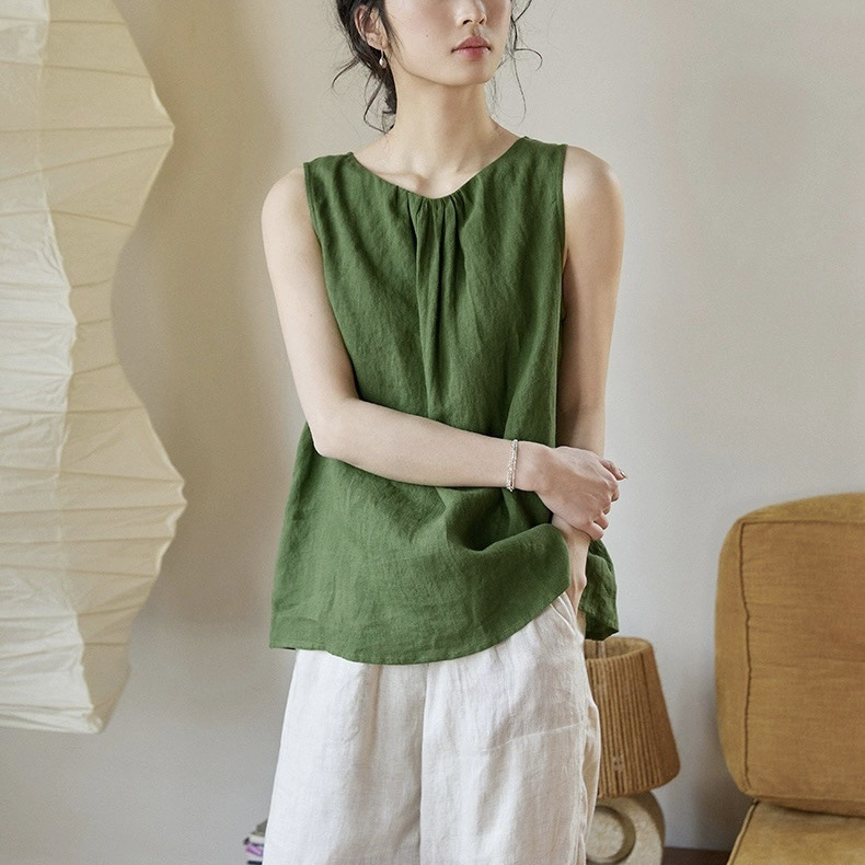 2025夏新款复古绿宽松显瘦百搭无袖小衫背心
