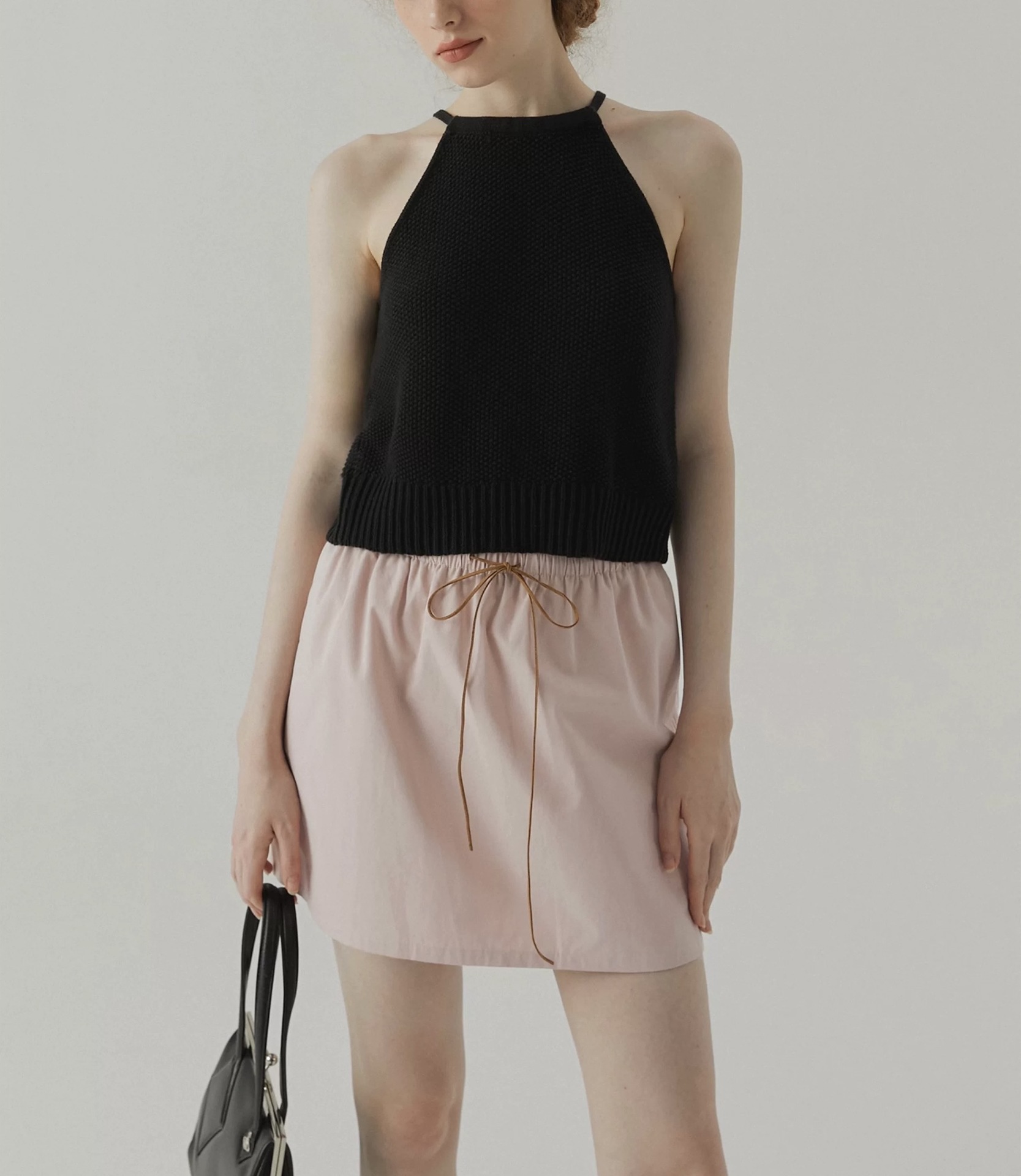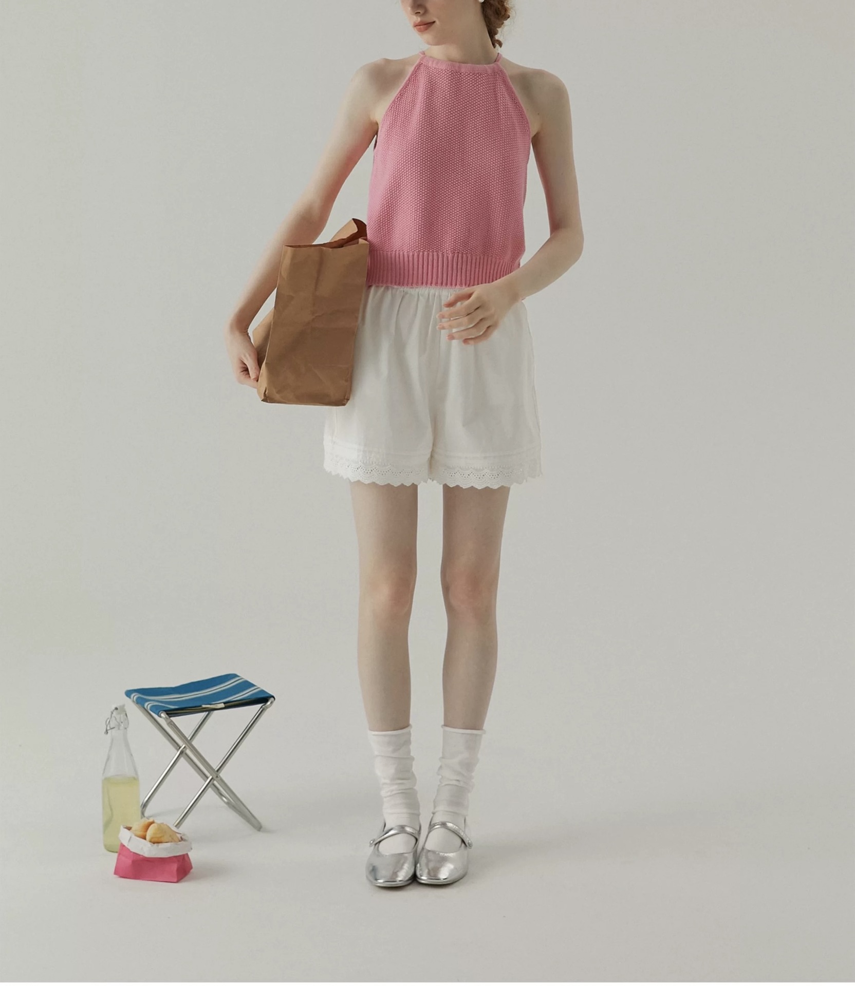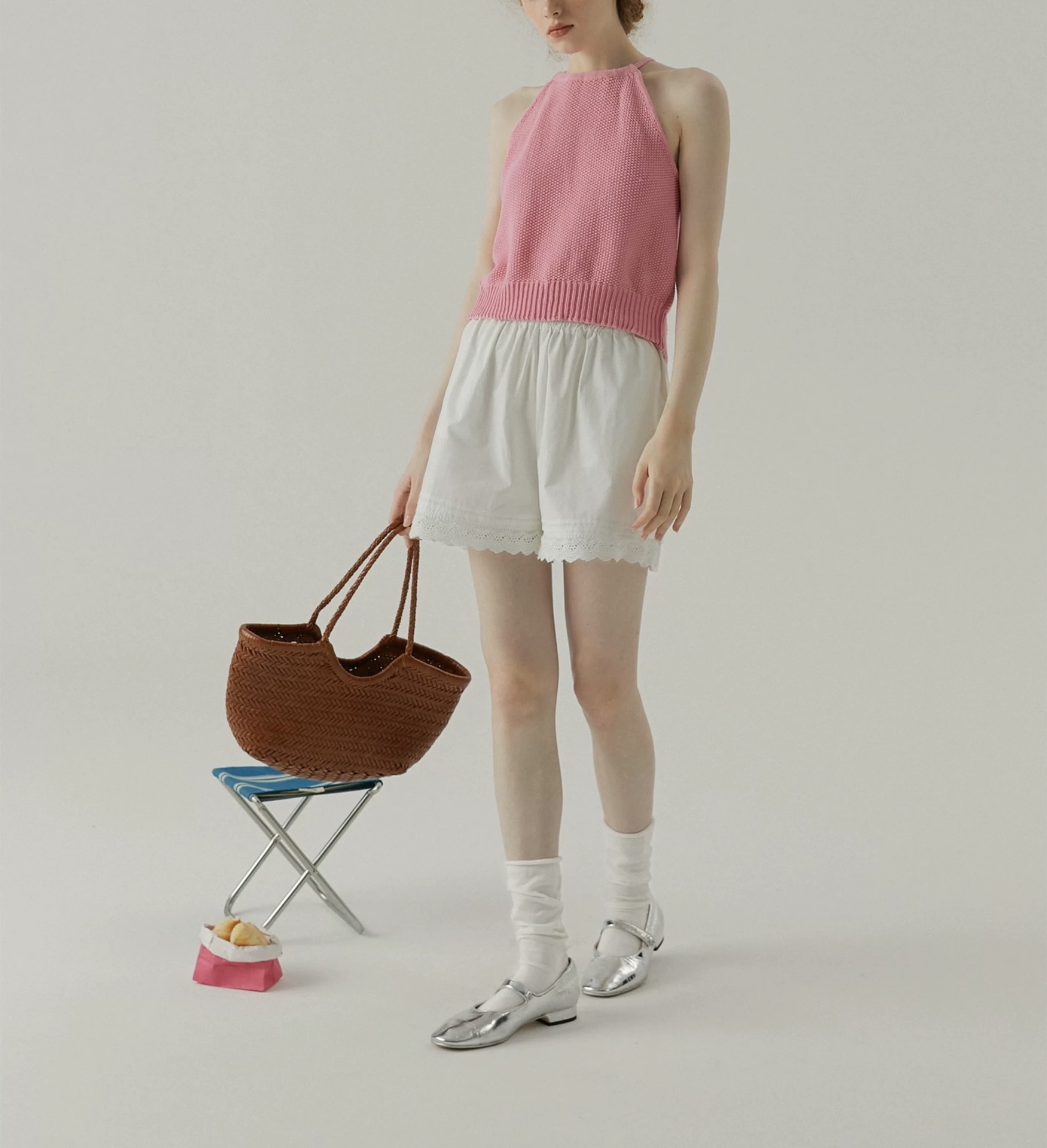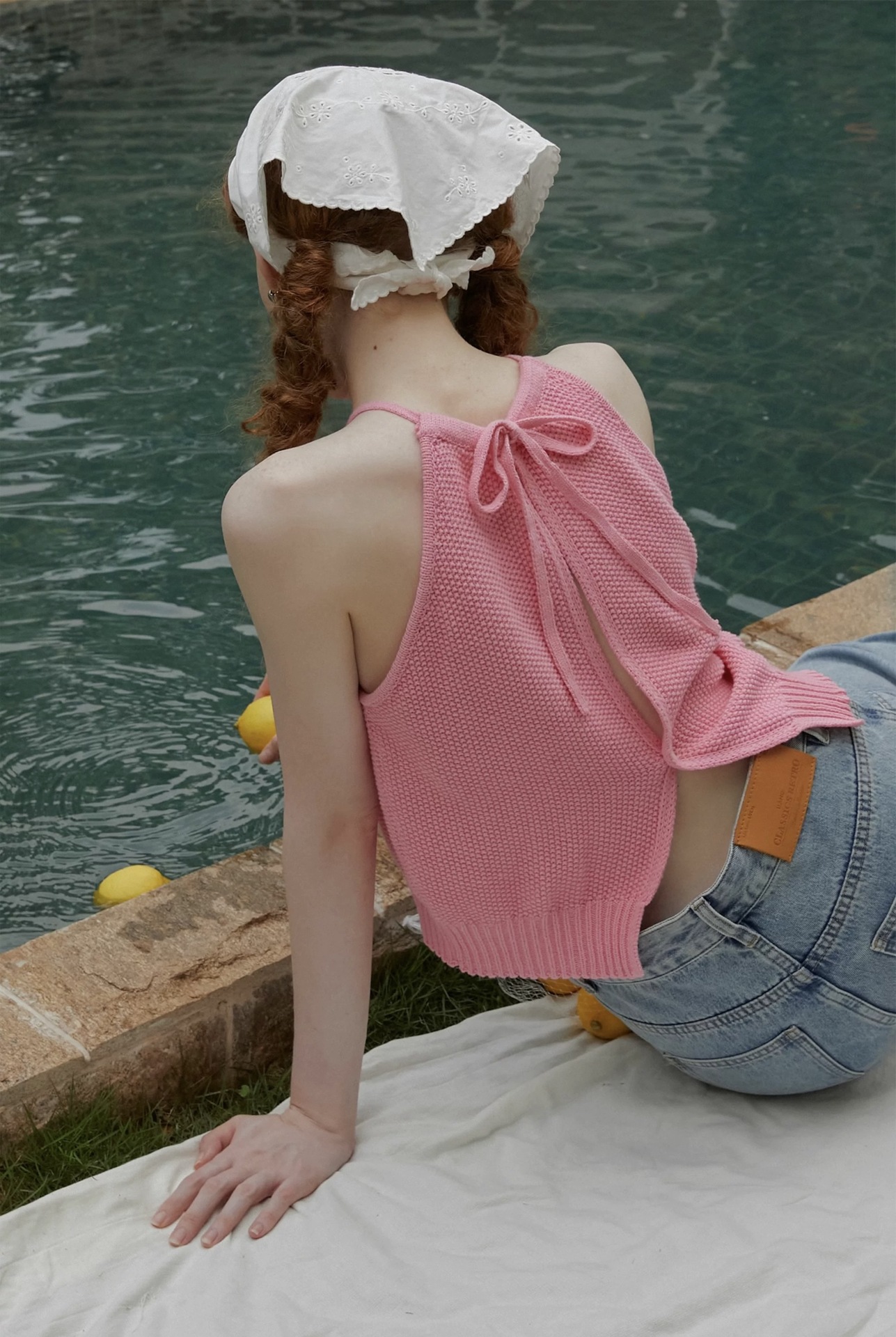 LANO镂空削肩针织背心复古法式吊带甜美小心机上衣内搭外穿女夏