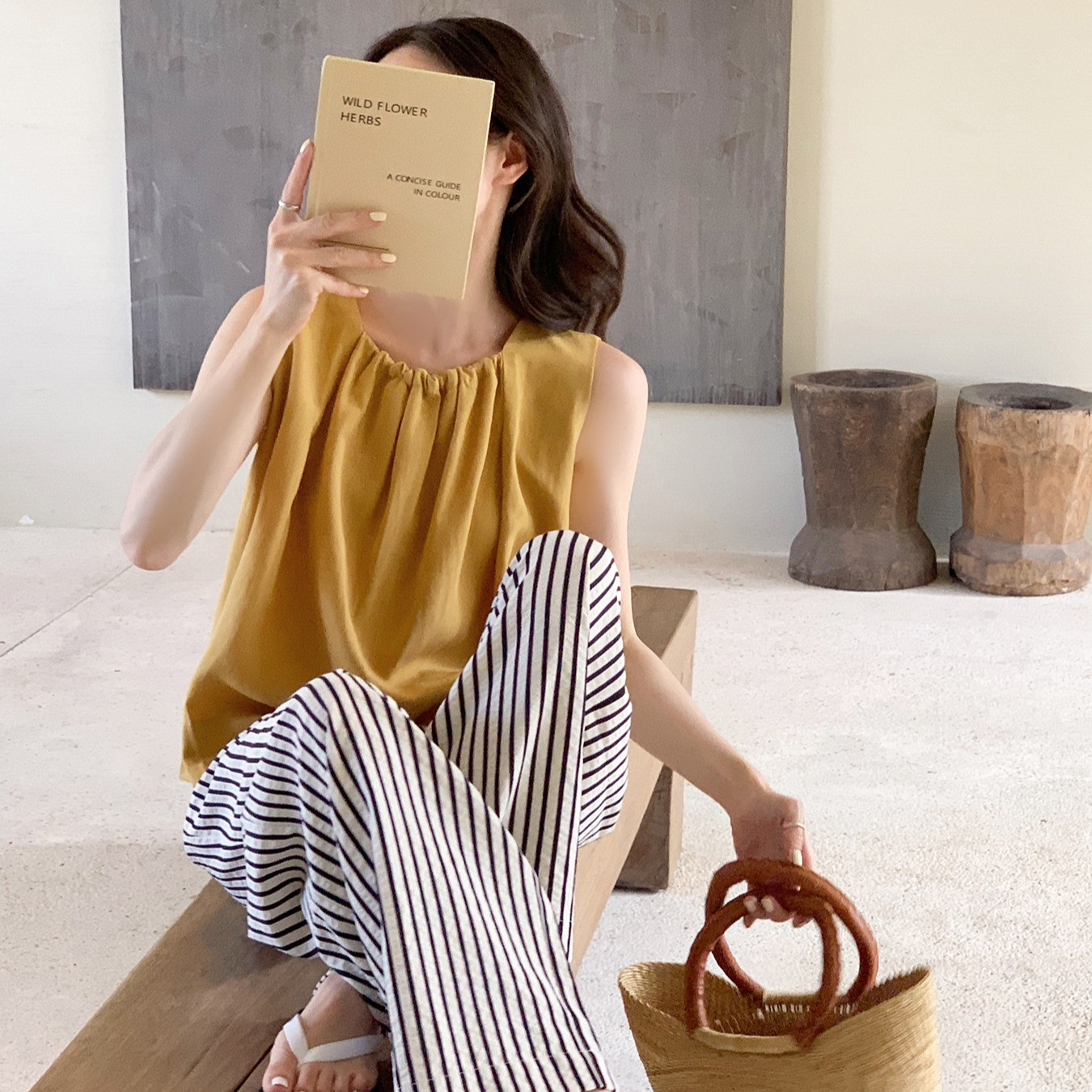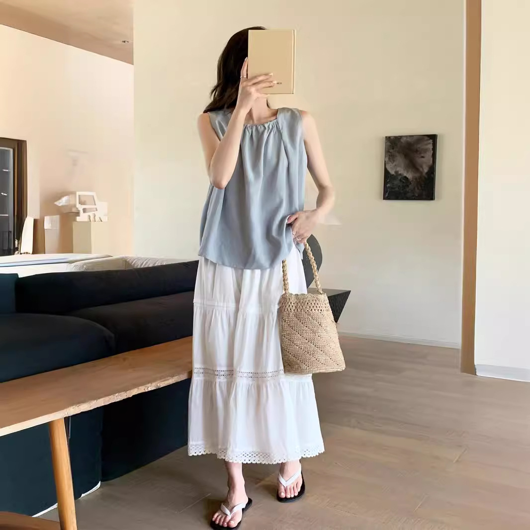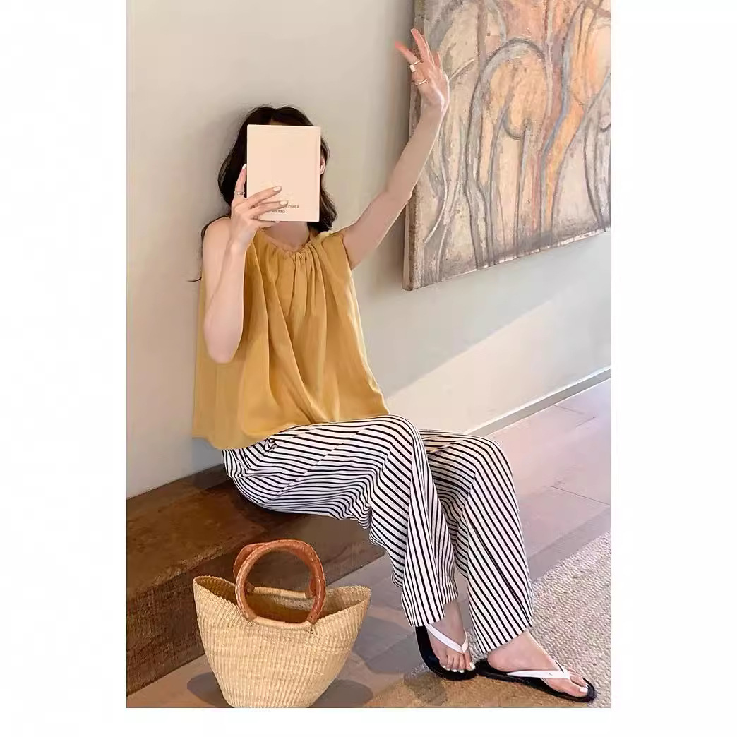 甜橙酒/惬意度假风天丝吊带女夏外穿无袖上衣高级感