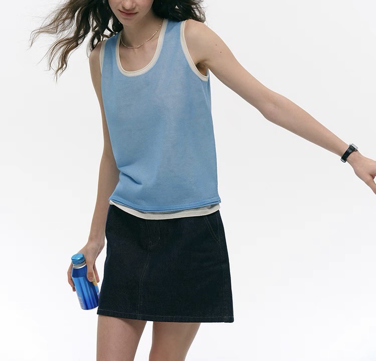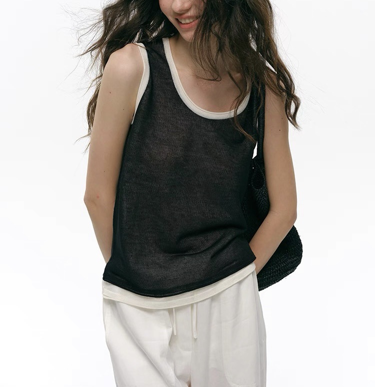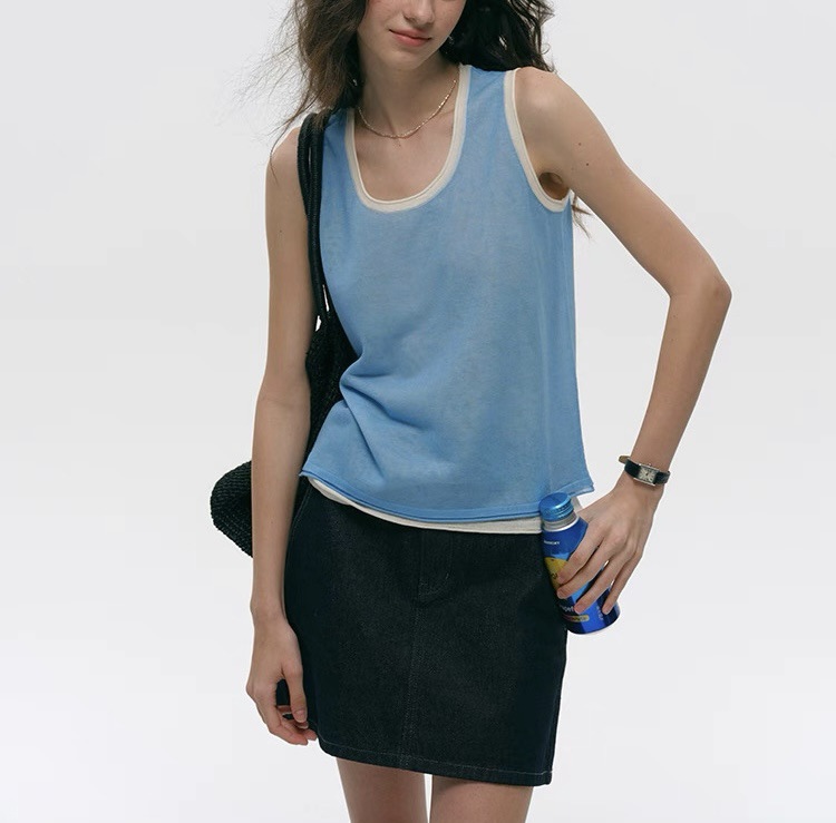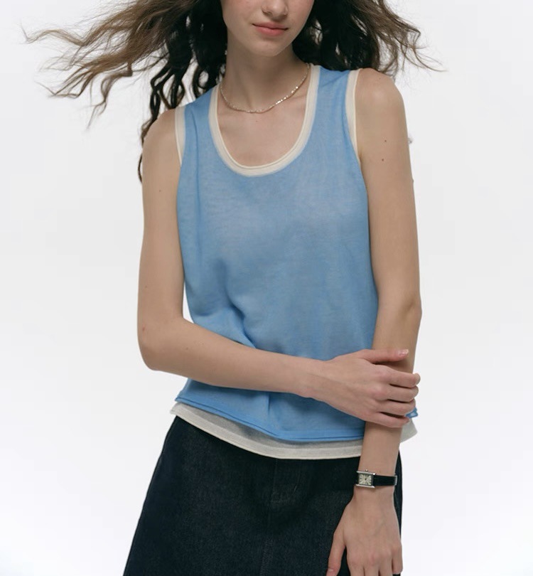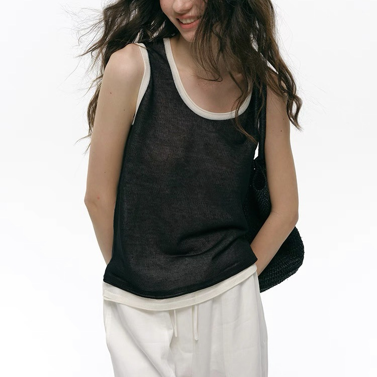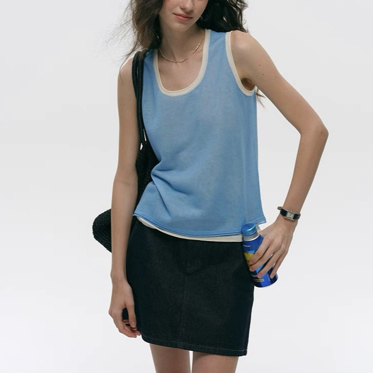 双层领撞色背心吊带女夏季新款透气薄款无袖上衣