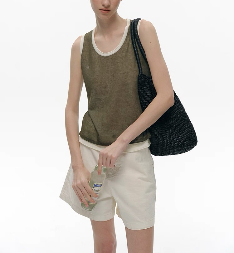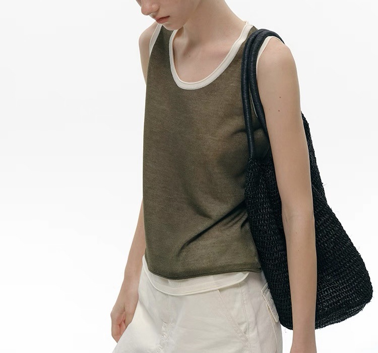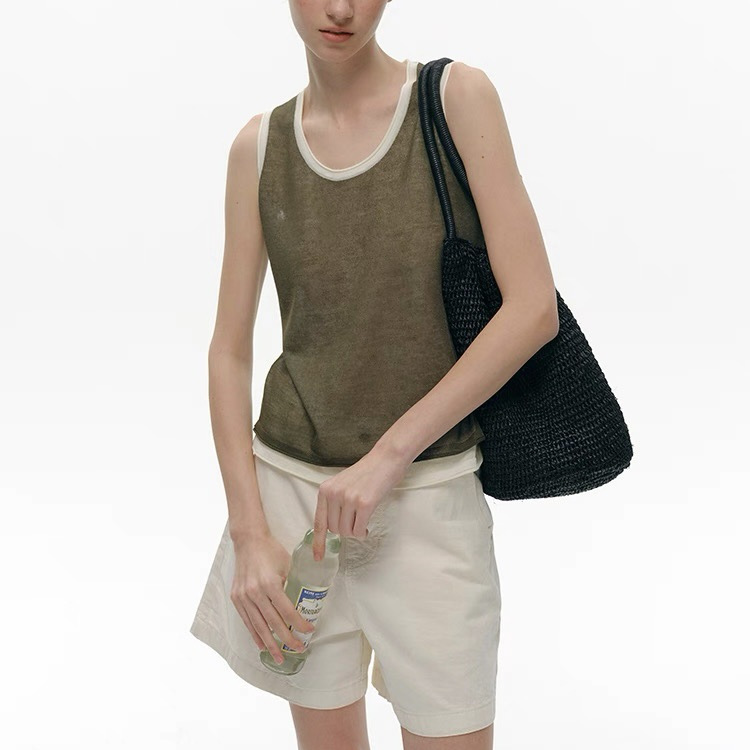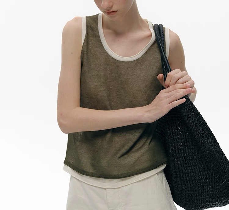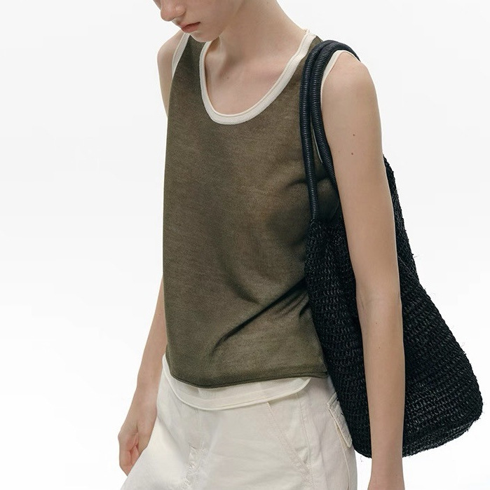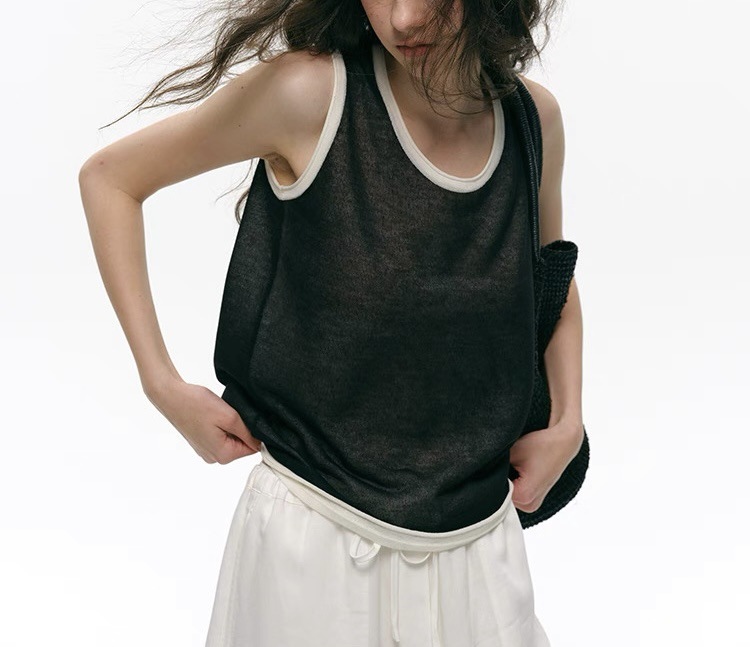 双层领撞色背心吊带女夏季新款透气薄款无袖上衣