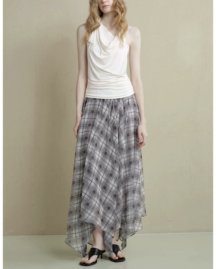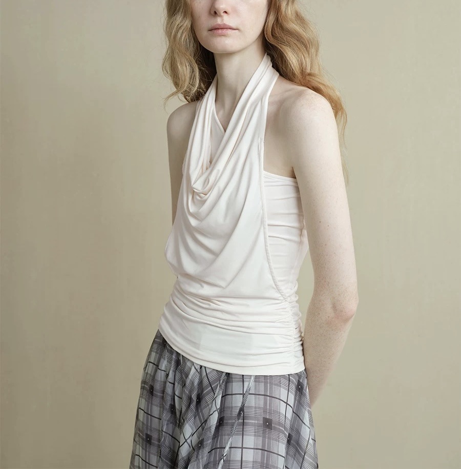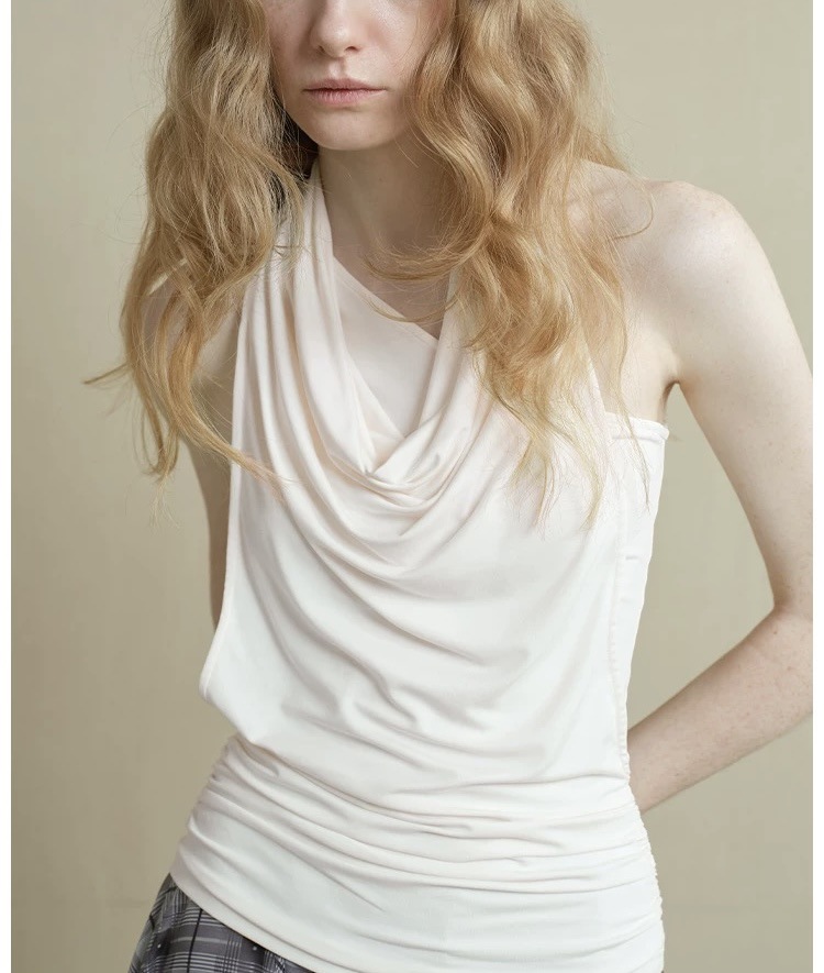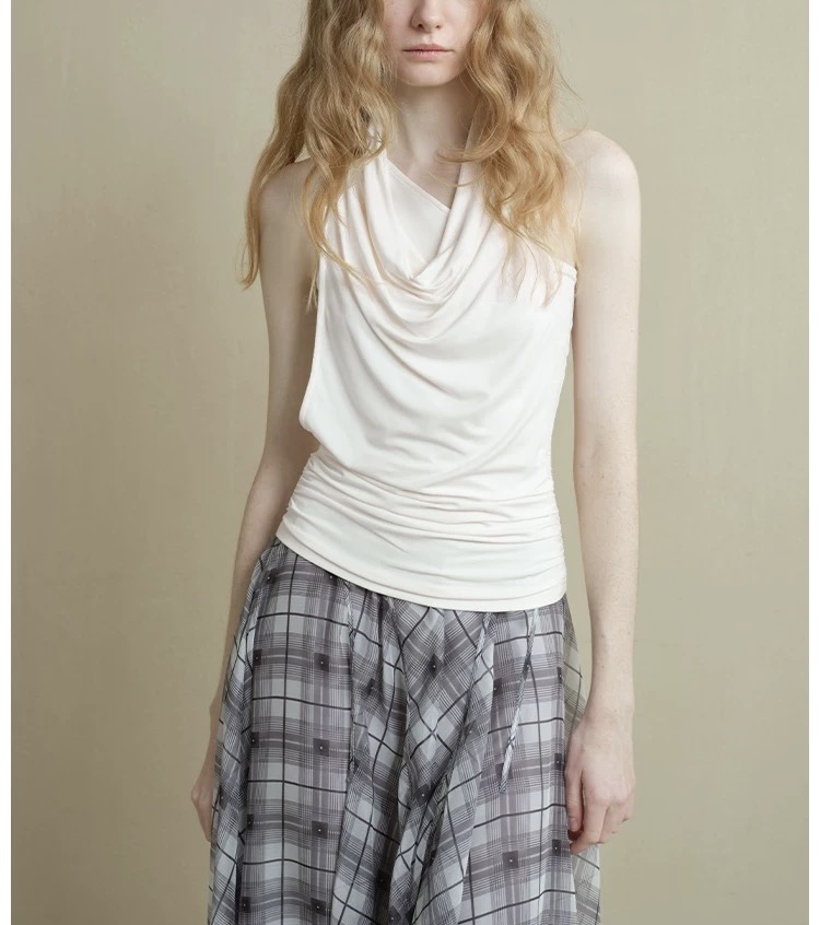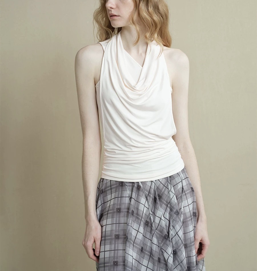 莫代尔亲肤不起皱后背斜肩设计感荡领背心上衣