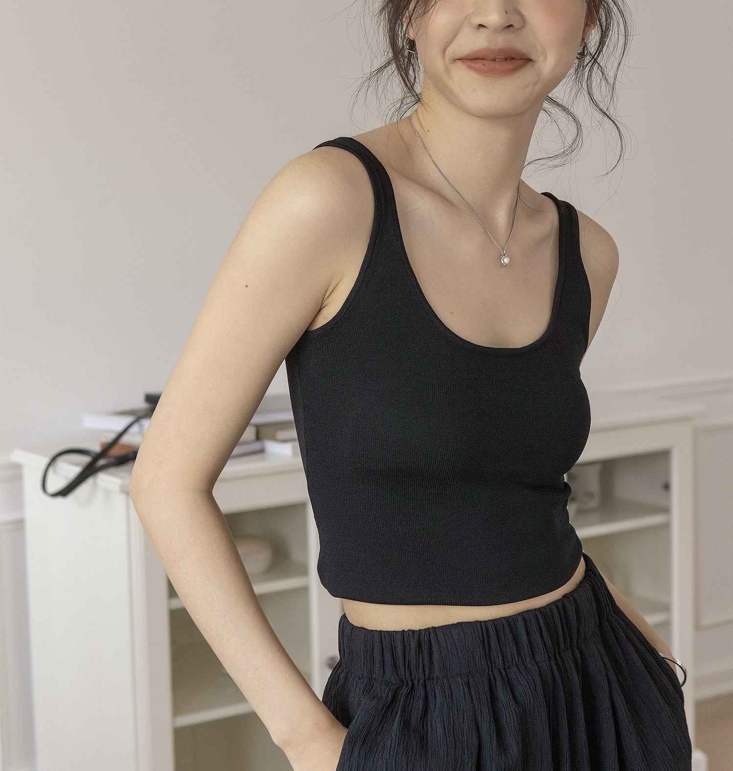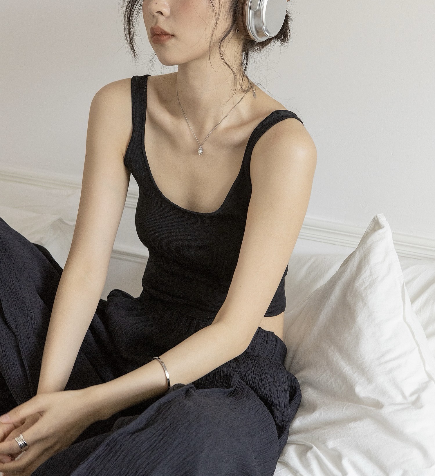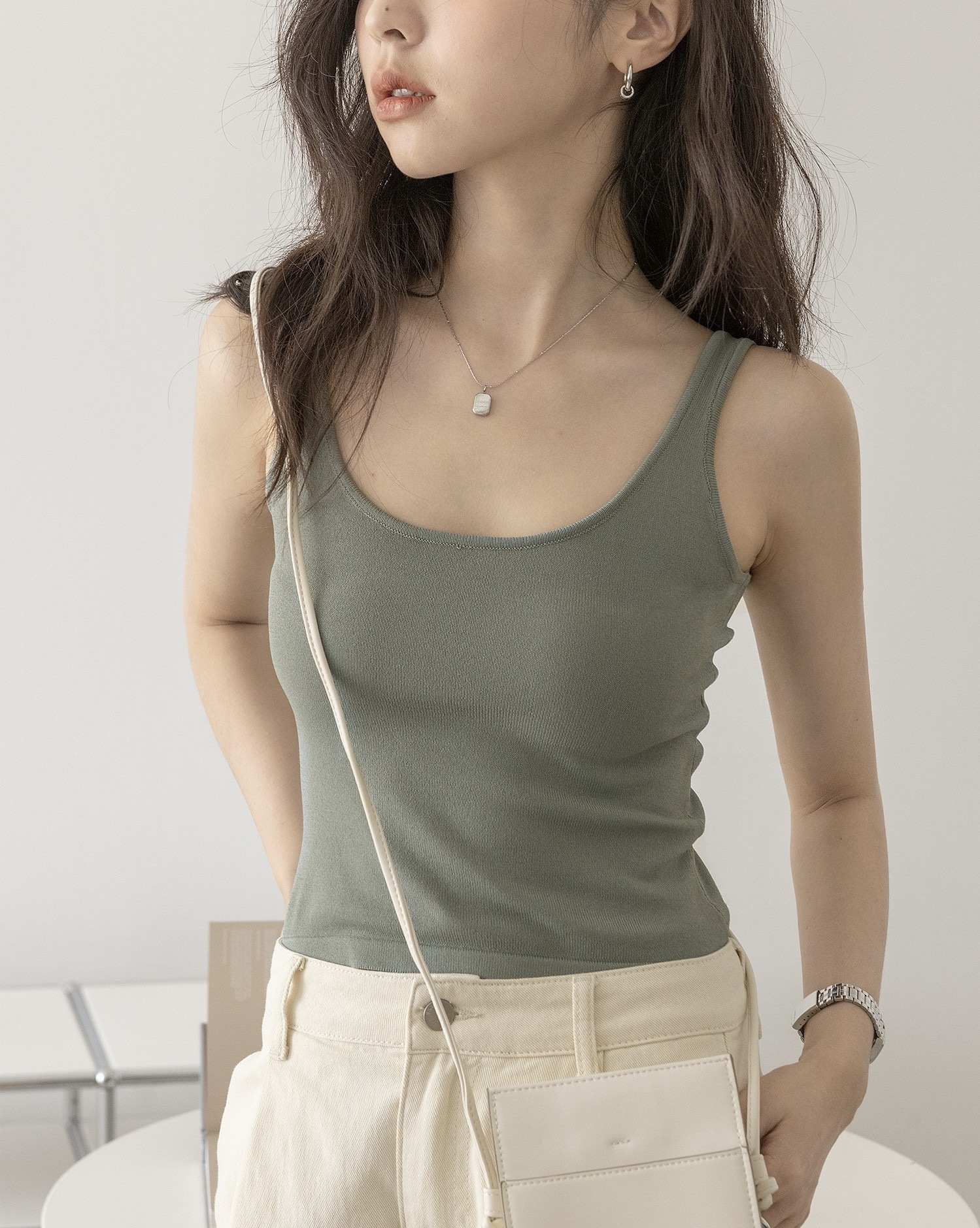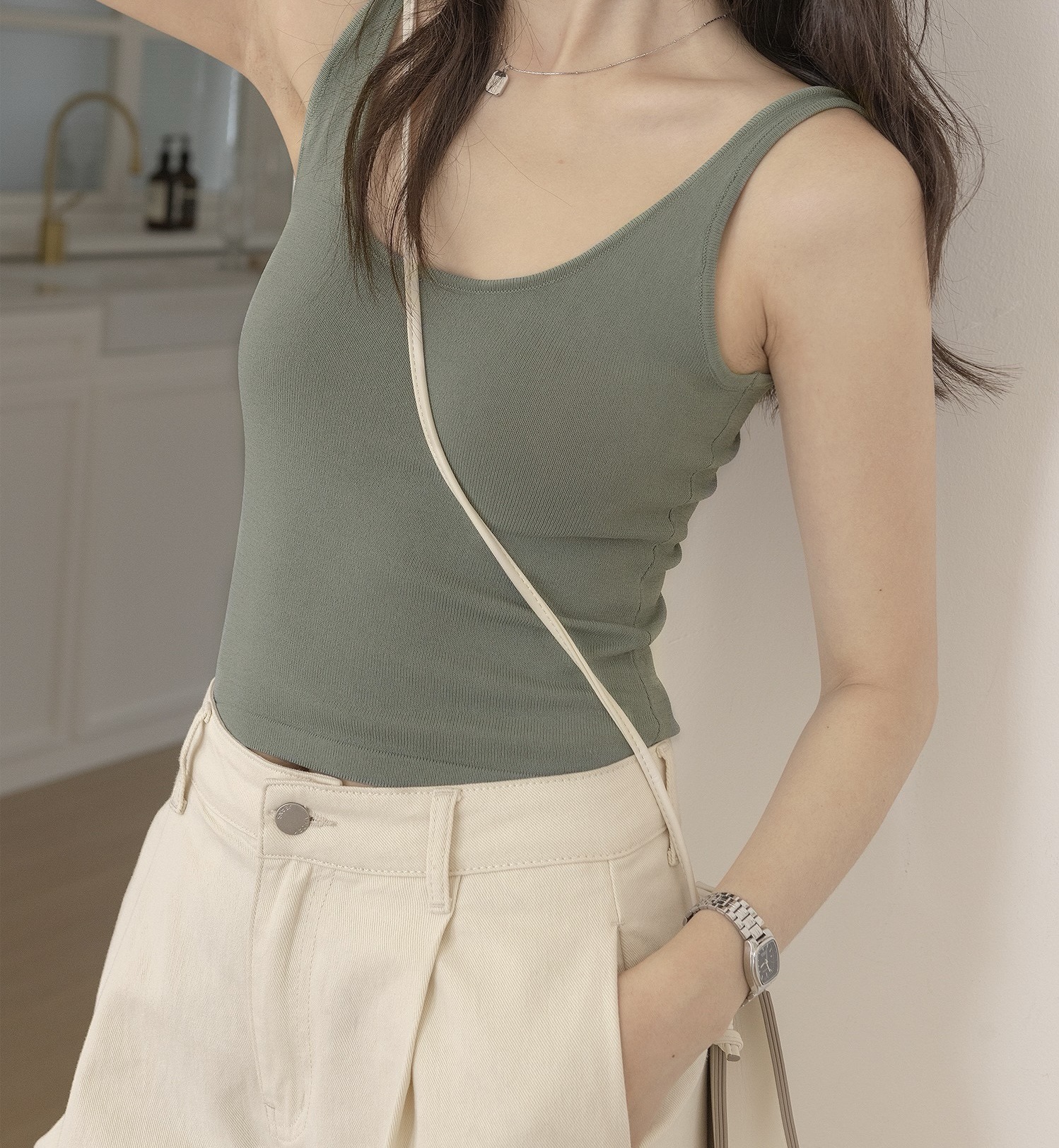 U领吊带背心女内搭夏季新款针织弹力性感打底外穿上衣