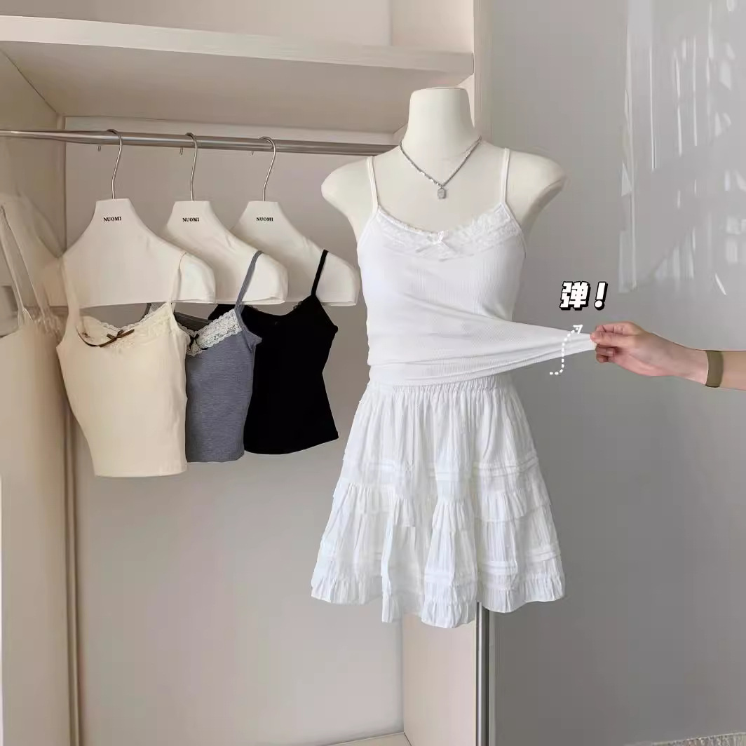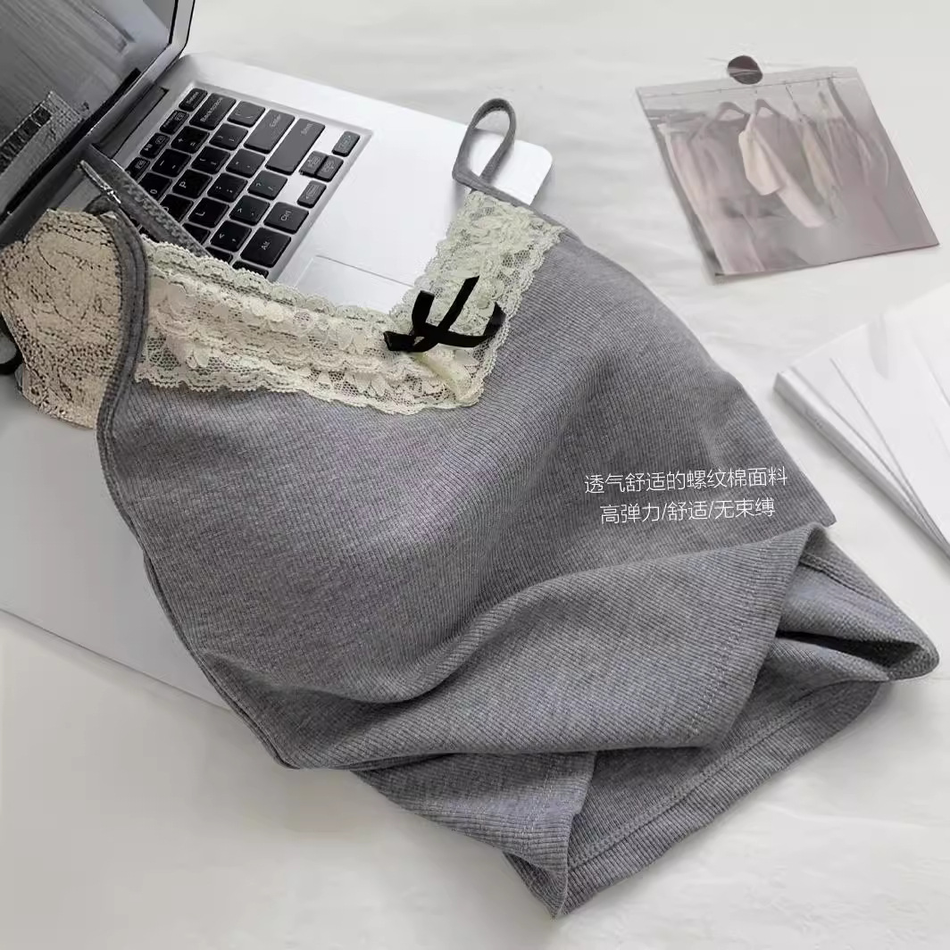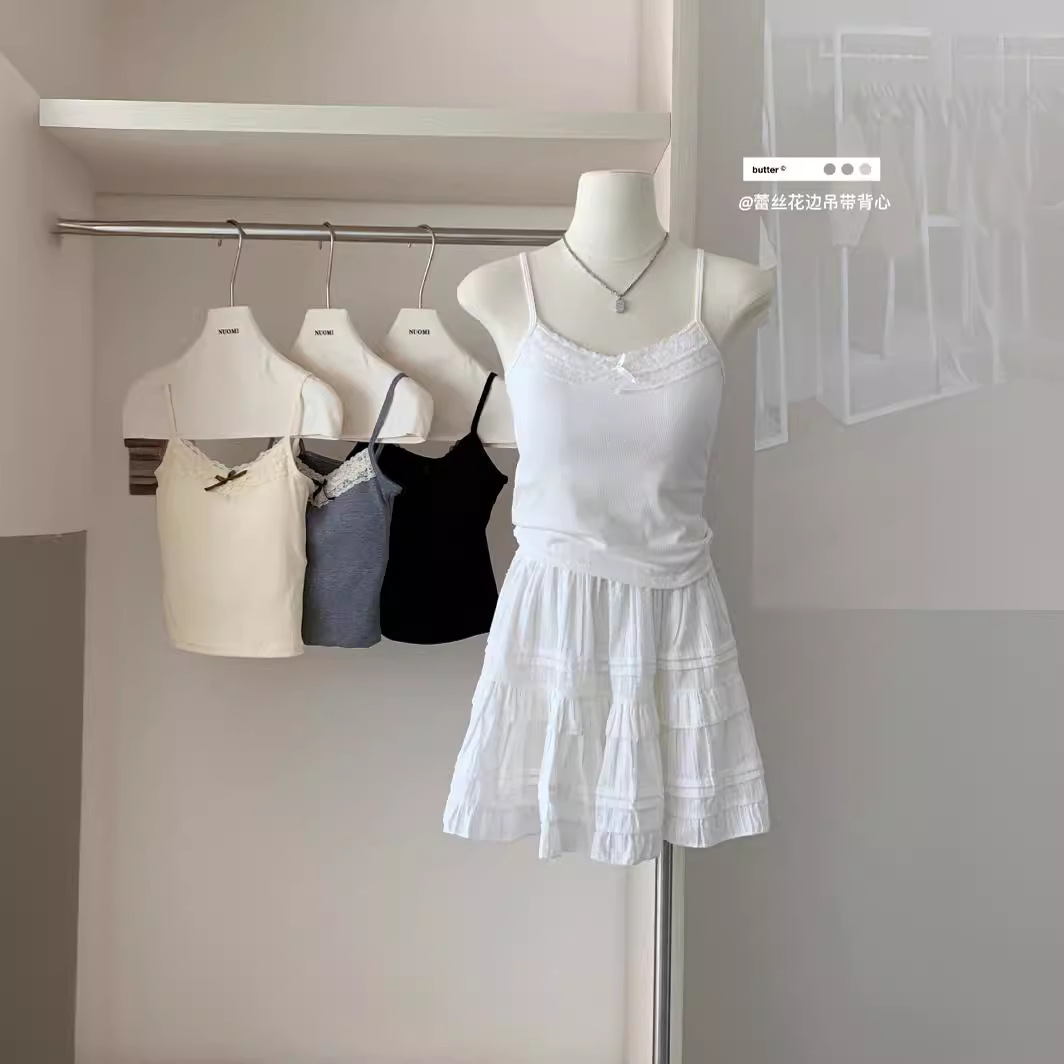 蕾丝边设计感蝴蝶结小吊带女春季新款内搭显瘦短款背心