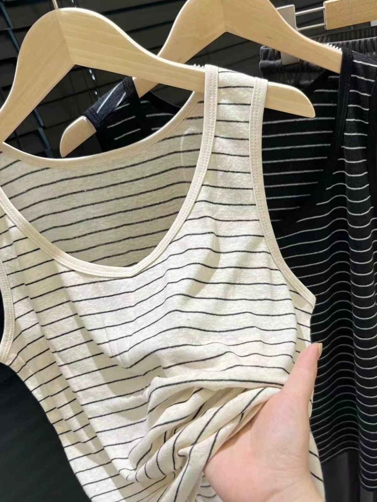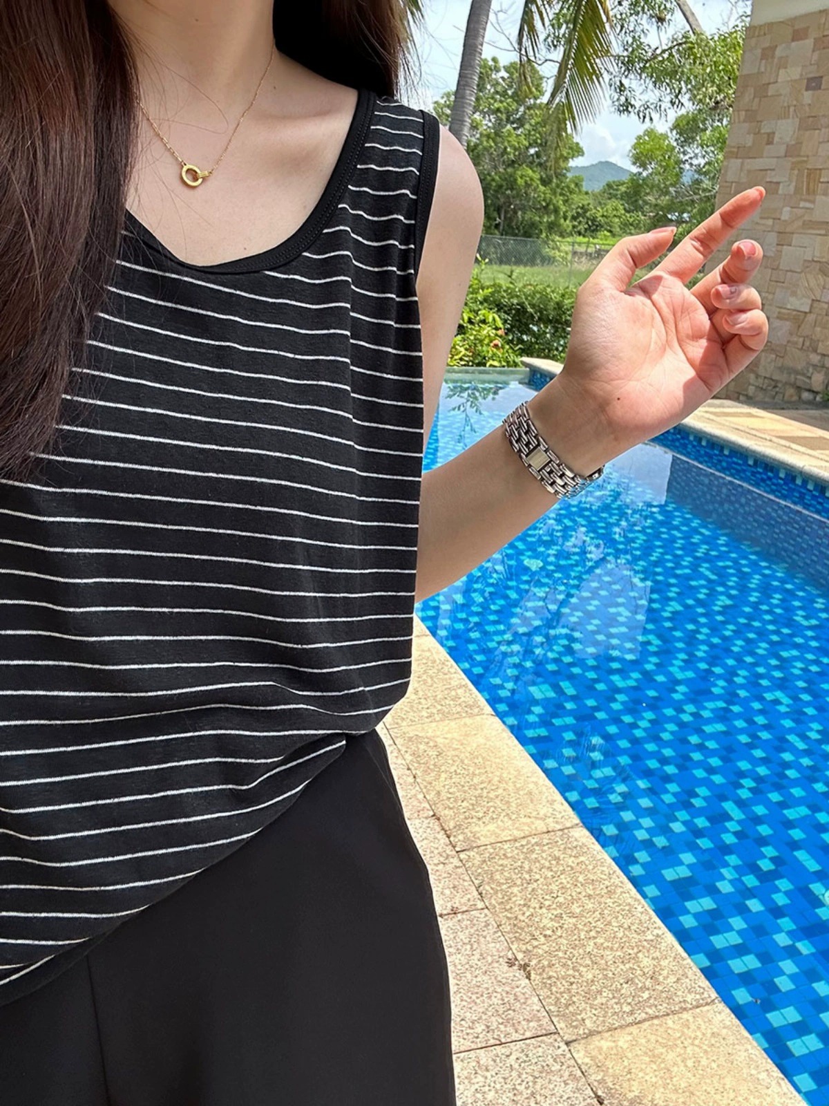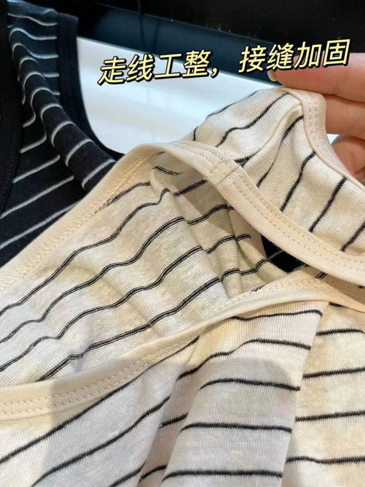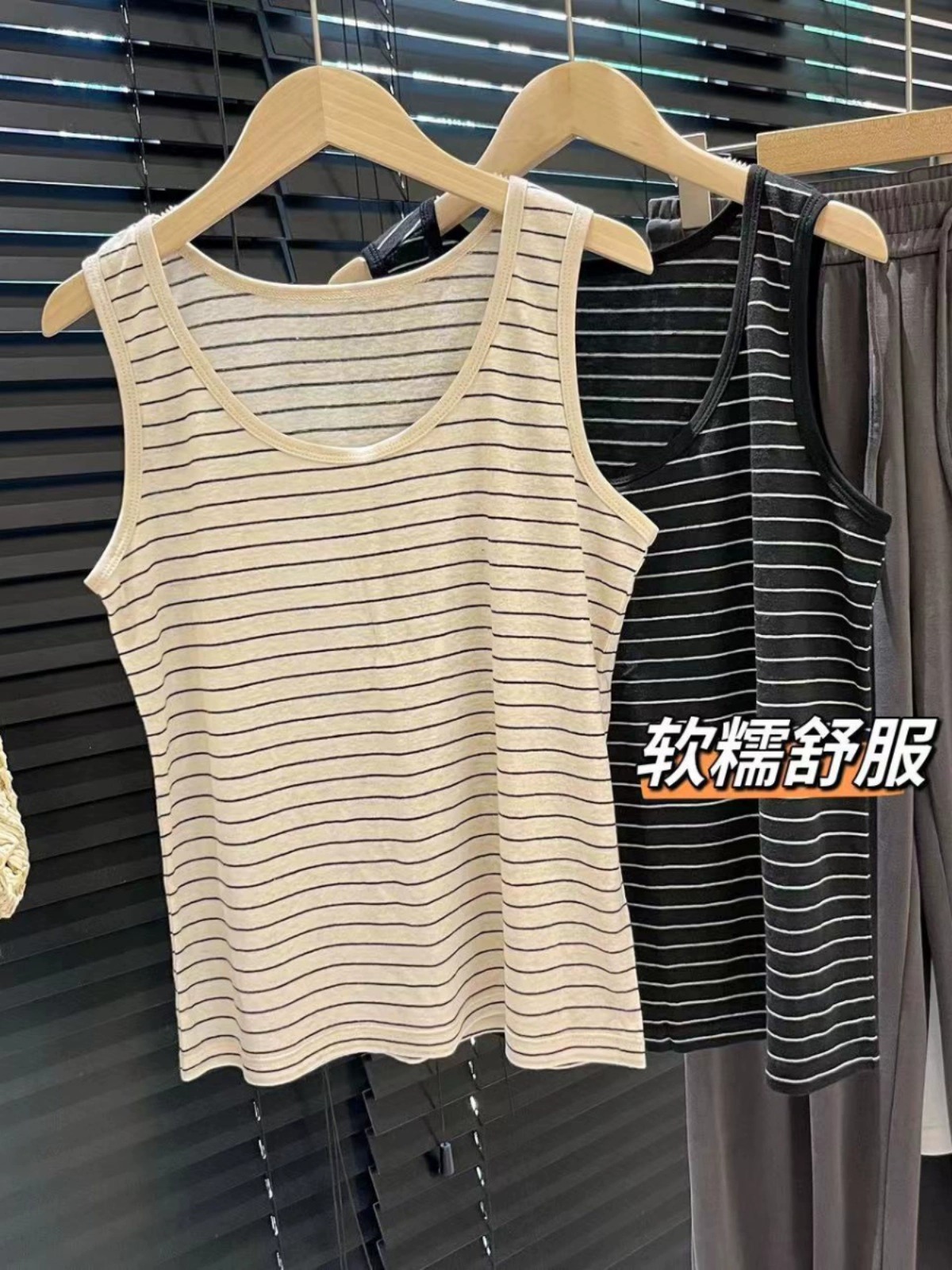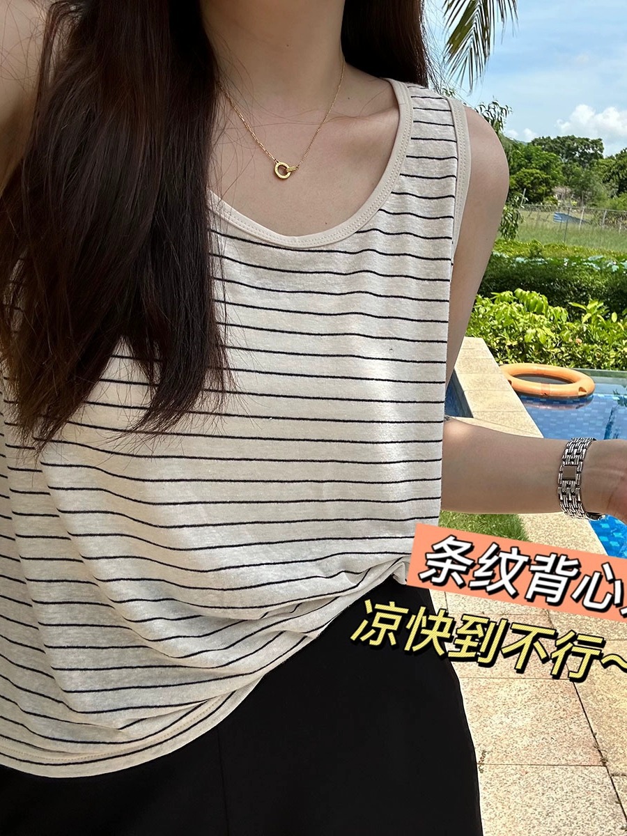 韩式夏季净色条纹韩版圆领气质宽松减龄百搭背心上衣