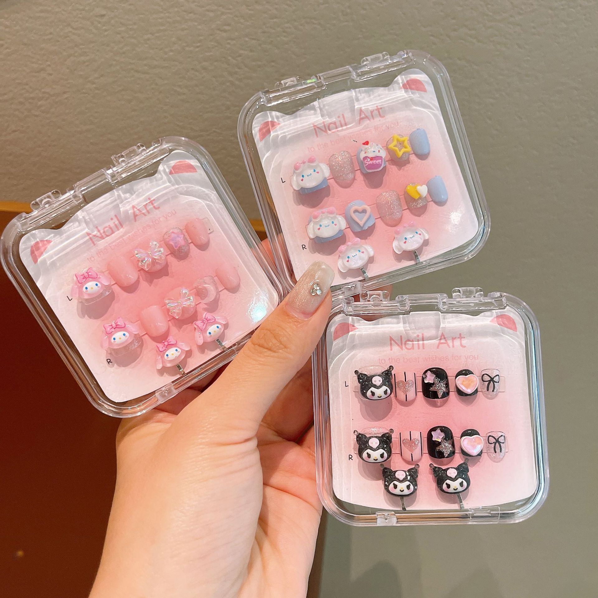 新款儿童穿戴甲立体三丽鸥卡通美甲饰品耳夹精美透明盒装指甲贴片