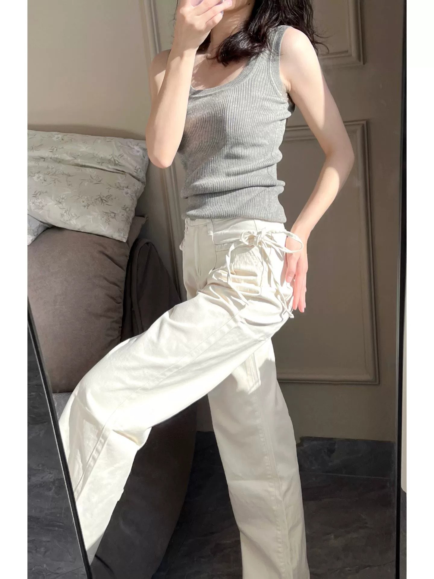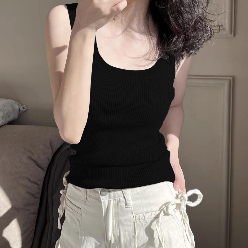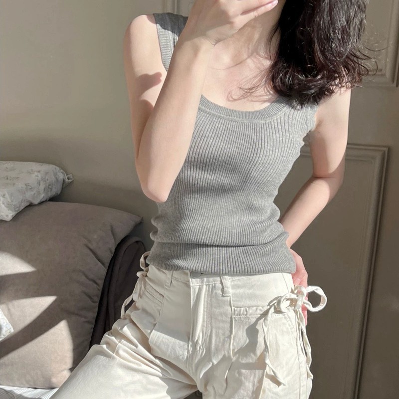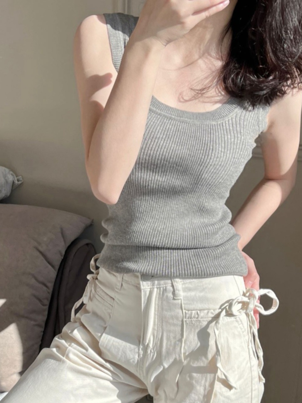 无袖针织t恤女夏季纯欲设计感小众性感上衣