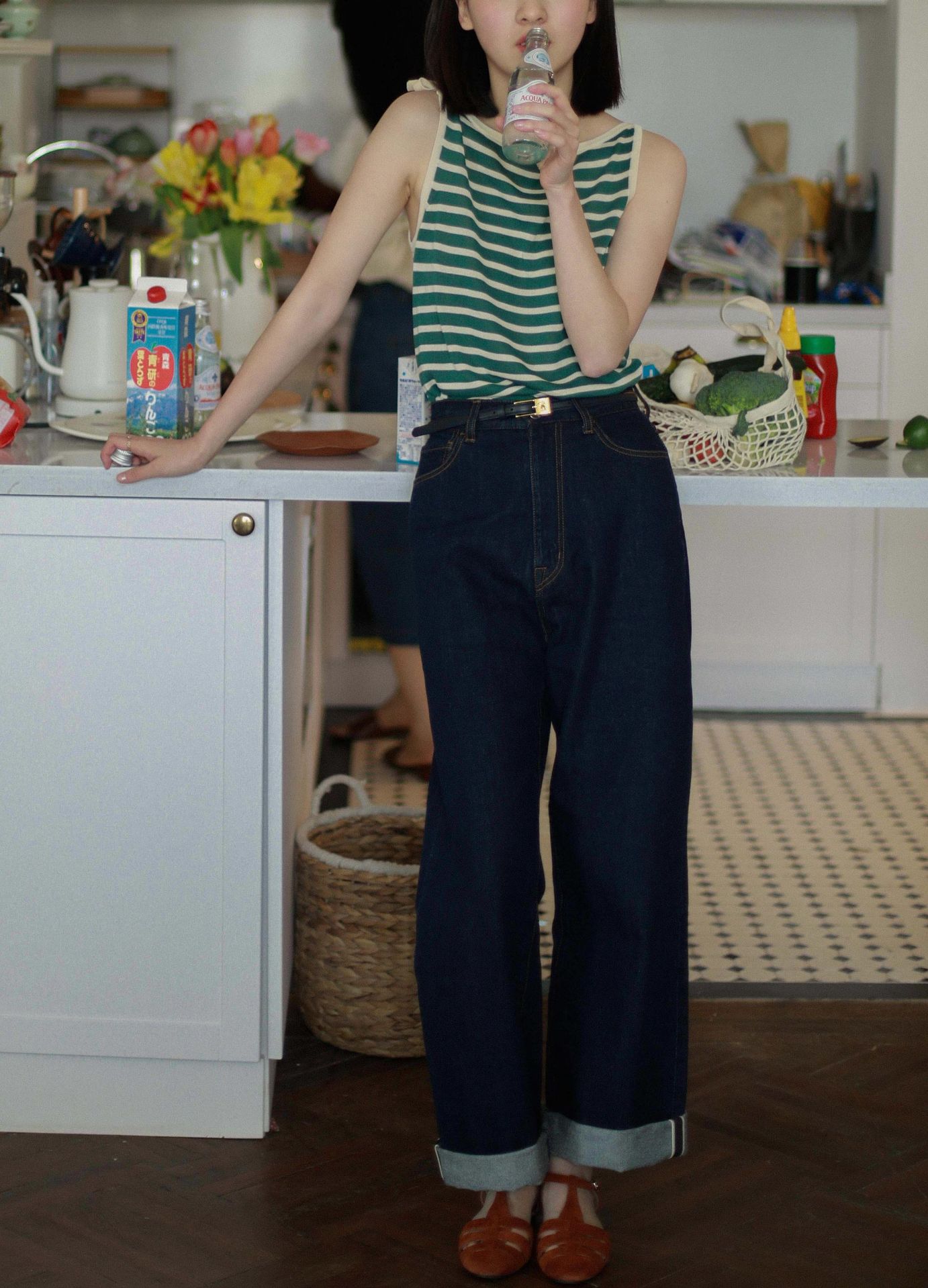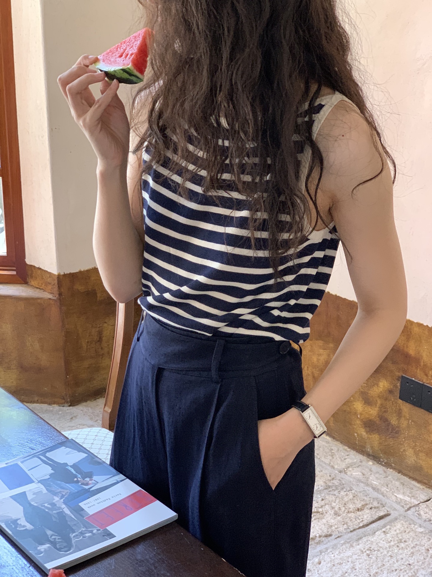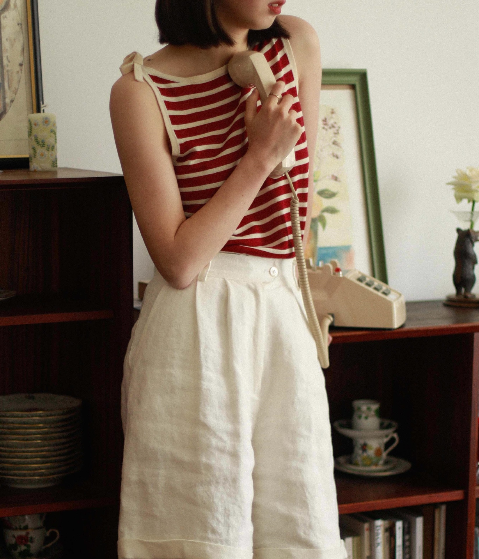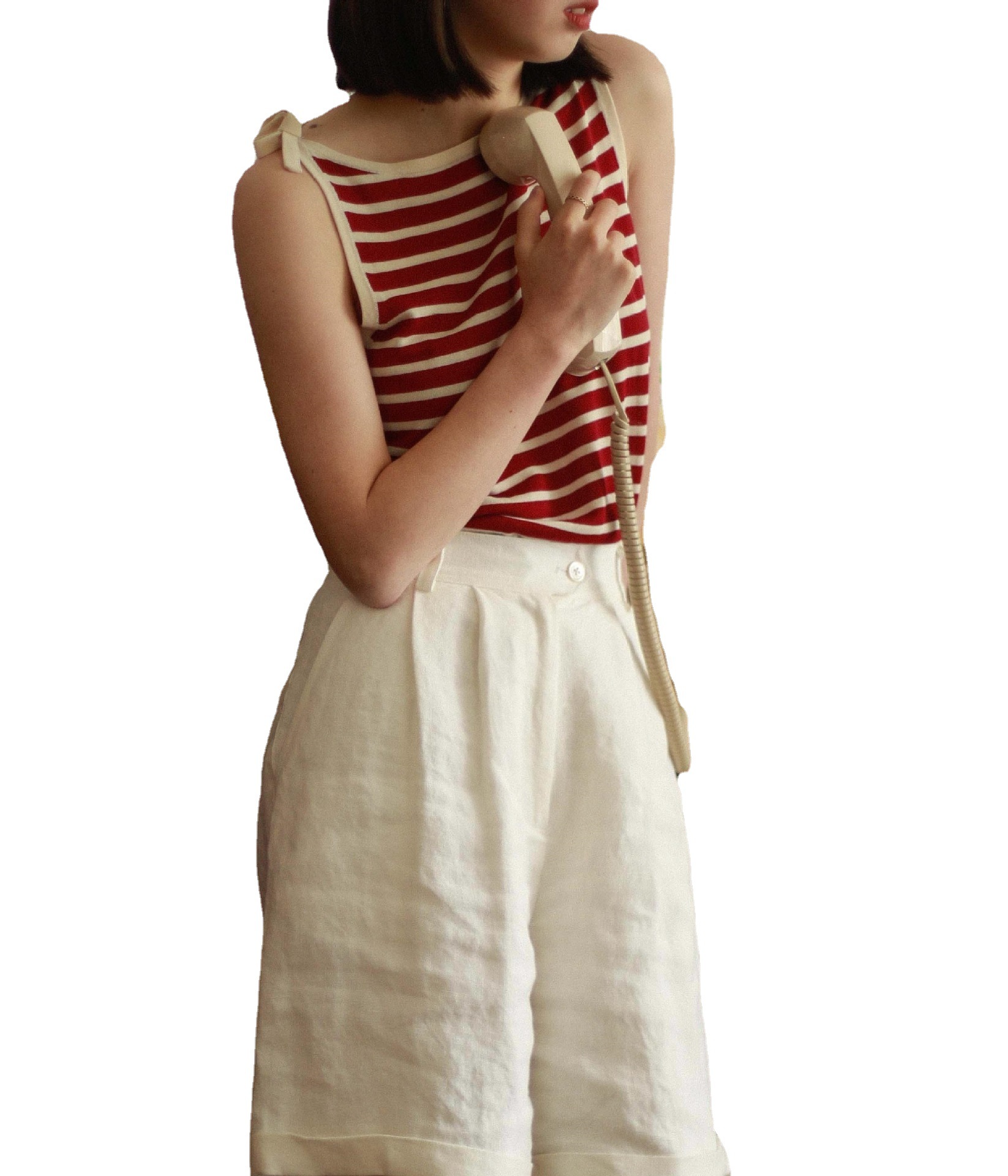 女装新款 青春单品 条纹一字领背心 清凉质感 四色