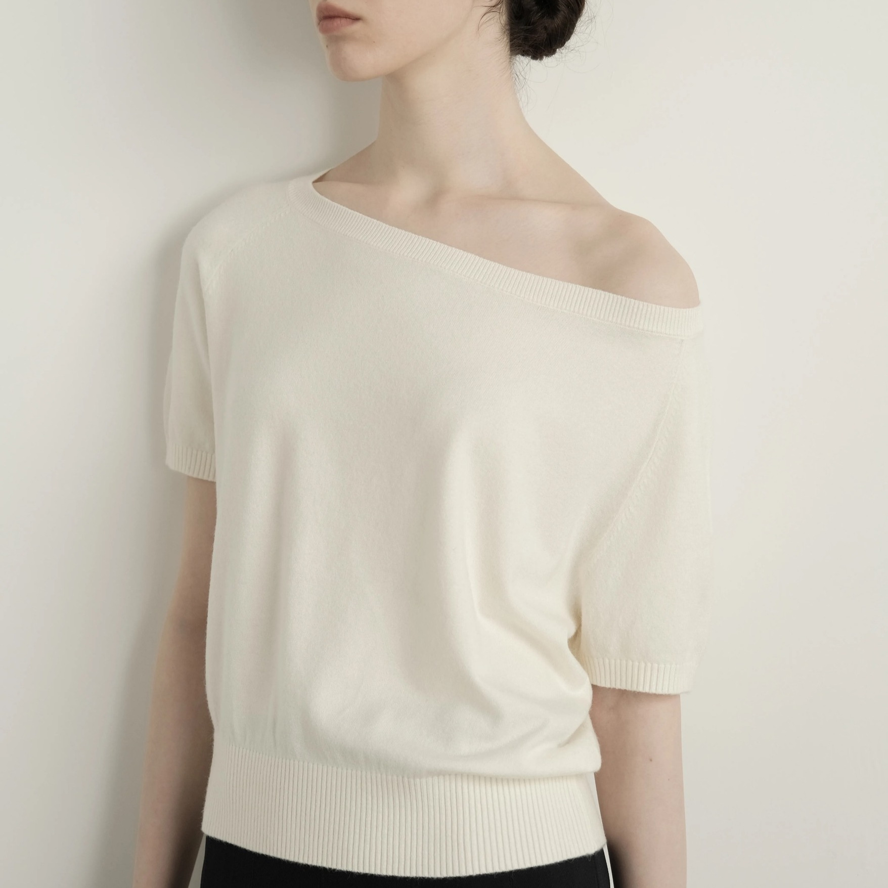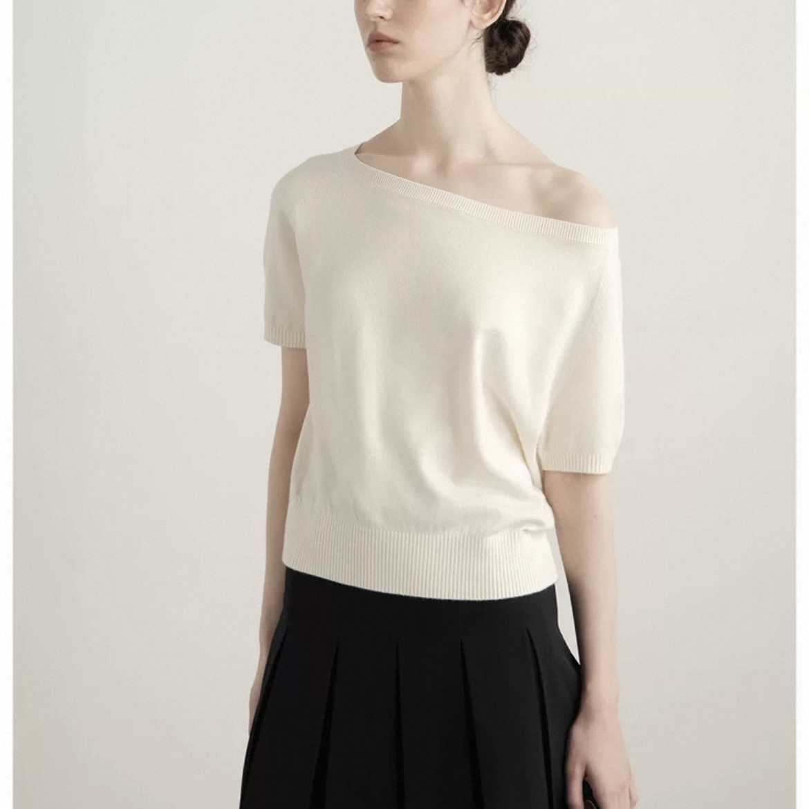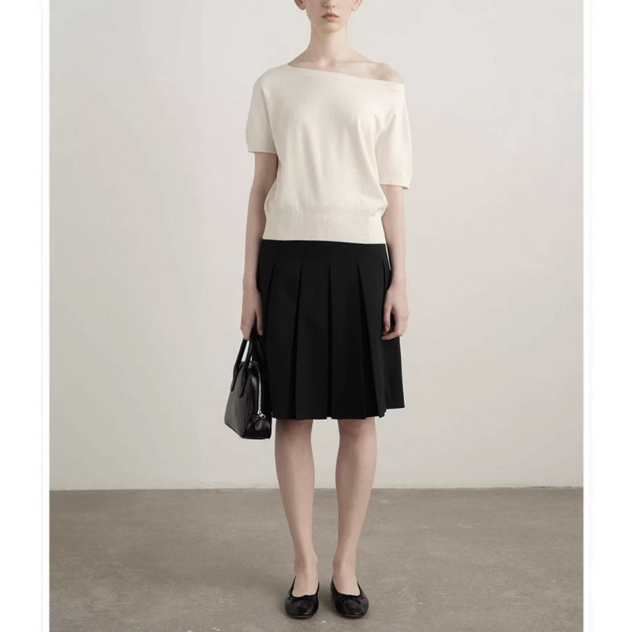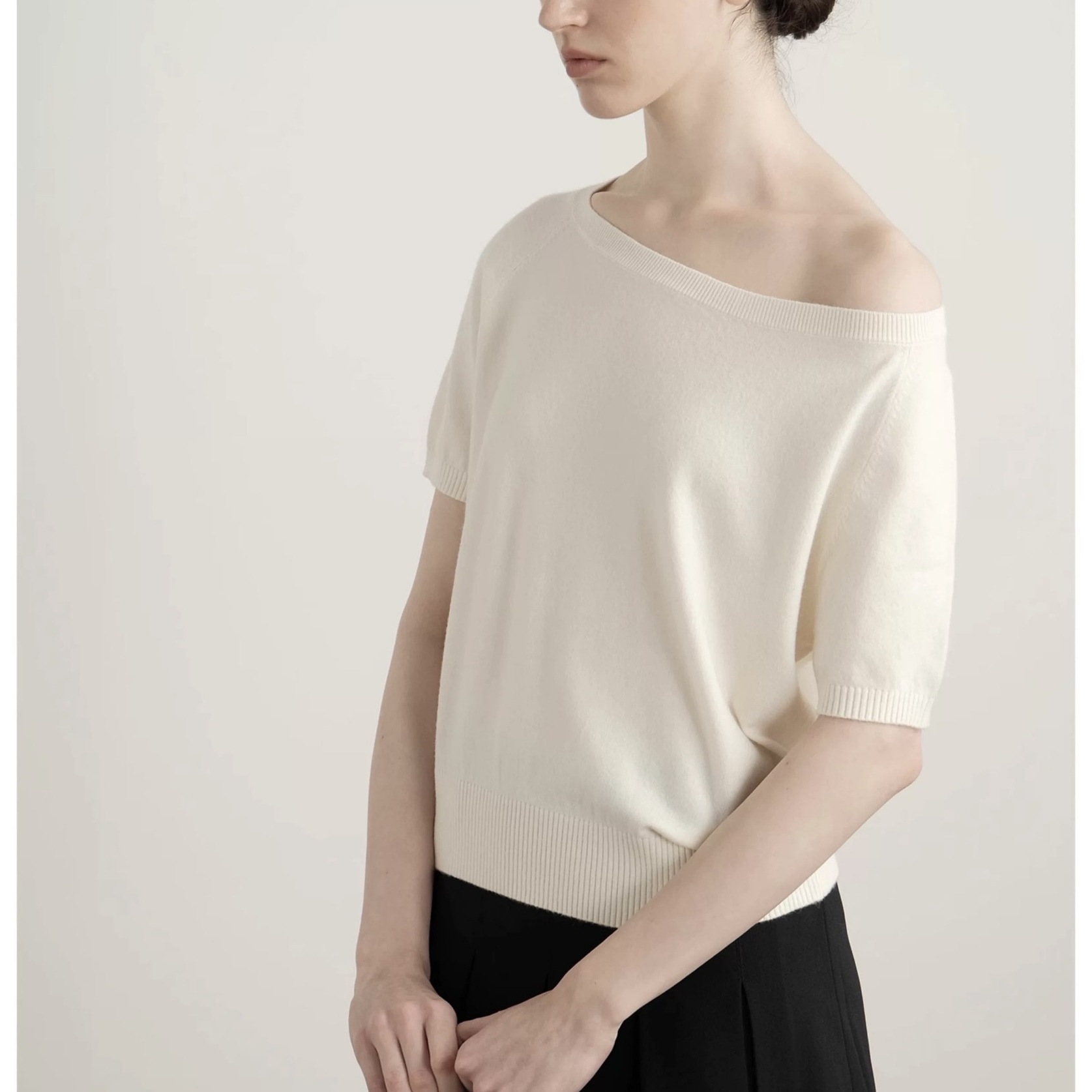 复古斜肩针织衫上衣夏一字肩短袖简约休闲显瘦毛衣t恤女