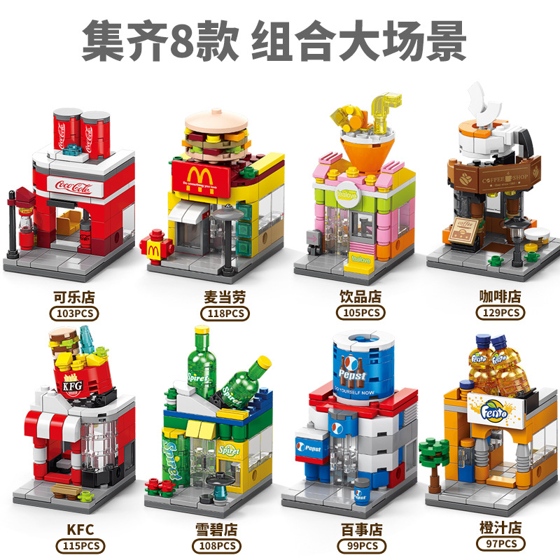 小颗粒街景系列积木儿童益智拼装房子男女孩玩具礼物摆件