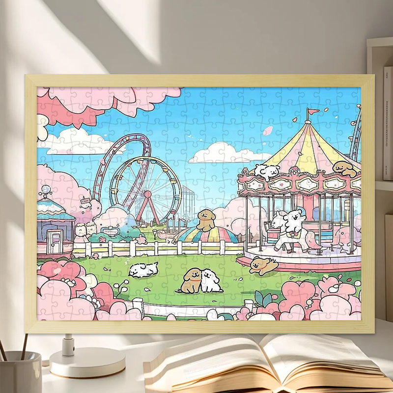 线条小狗木质拼图500片3到6岁以上儿童平图益智卡通8岁男宝礼物