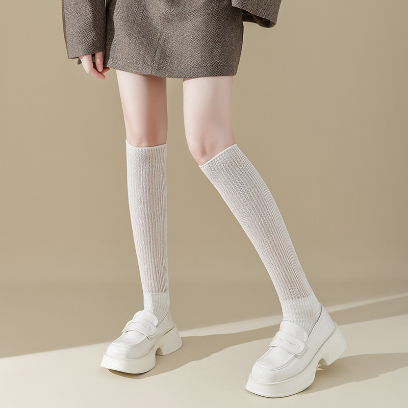 小腿袜子女miu风粗针小腿袜长筒堆堆袜金银丝针织芭蕾风纯色日韩