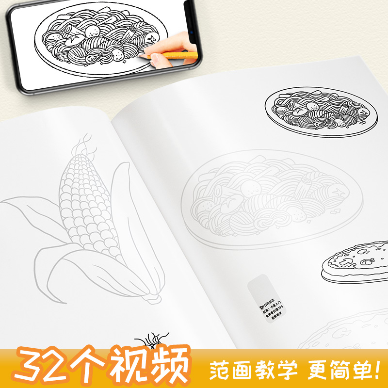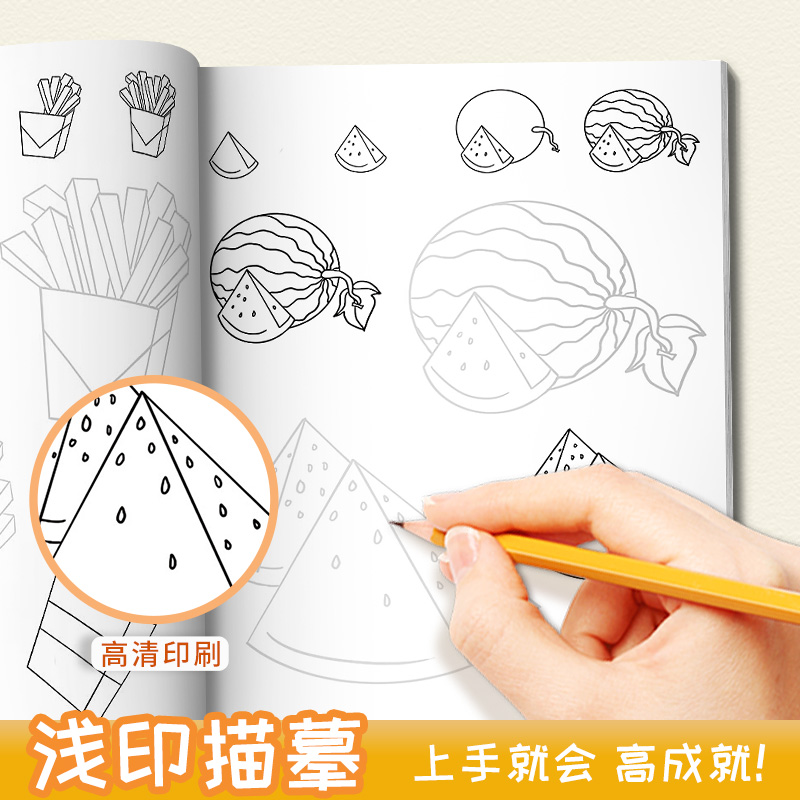 卡通食物描摹本线稿线条基础儿童漫画动漫初学者幼儿园素材涂色画画美术插画简笔画入门铅笔素描控笔训练绘画教程临摹画册画本图本