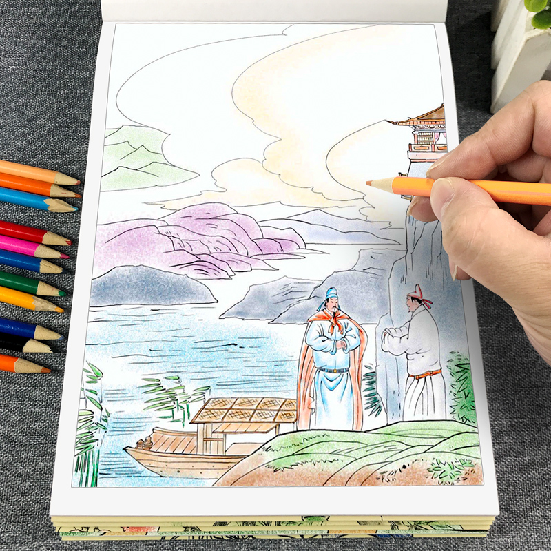 儿童线描临摹画册简笔画中国画白描画画手绘本山水人物花卉线稿涂色控笔训练练习绘画描绘本入门画本素描画册