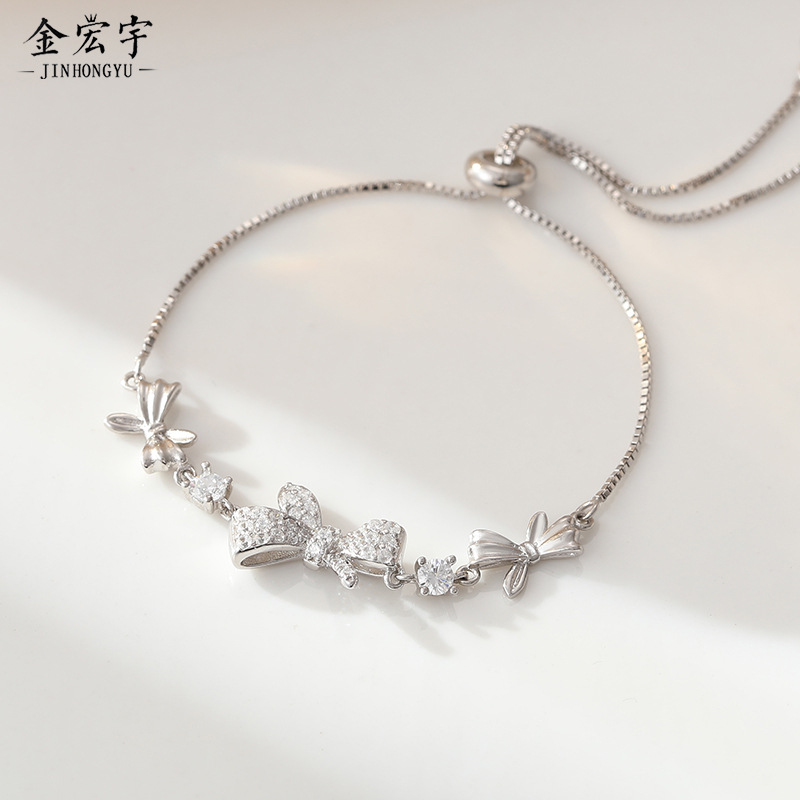 蝴蝶结抽拉手链女925纯银网红高级感韩版百搭盒子链手饰品