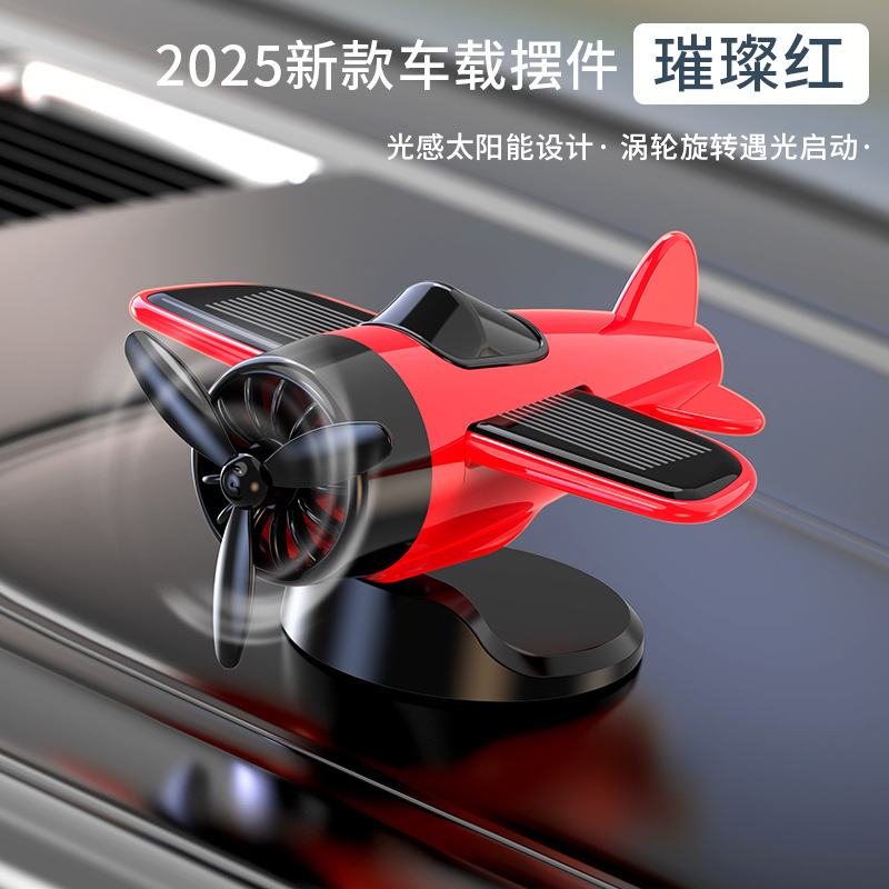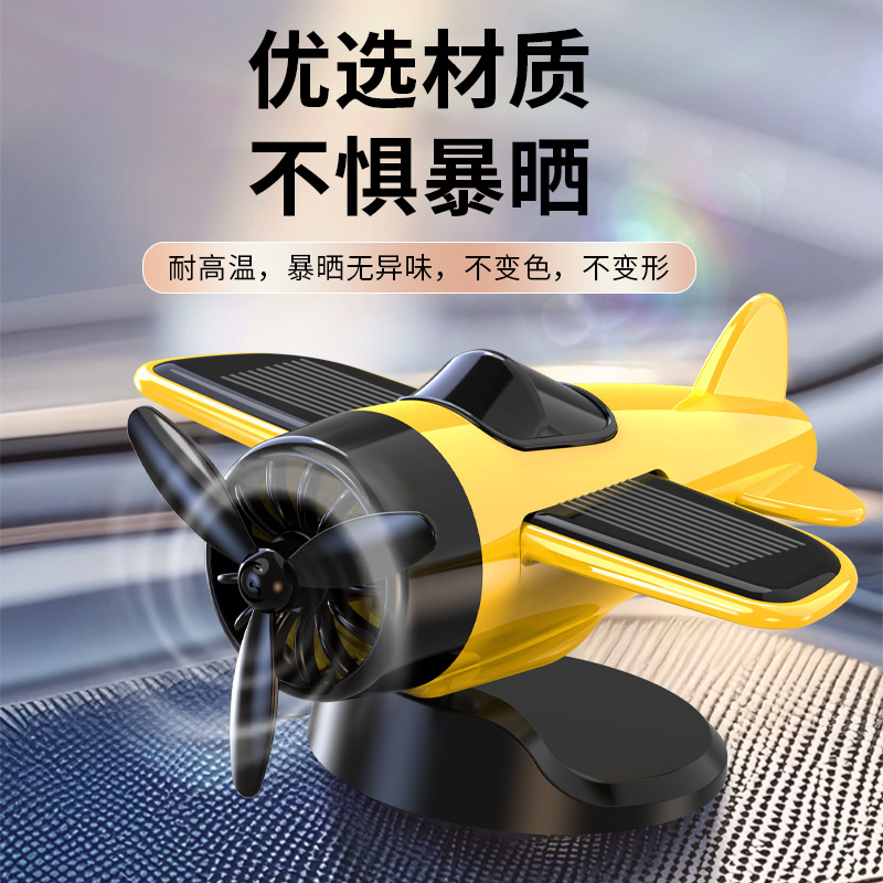 创意饰品摆件太阳能旋转飞机车内新款潮玩动感装饰用品摆设