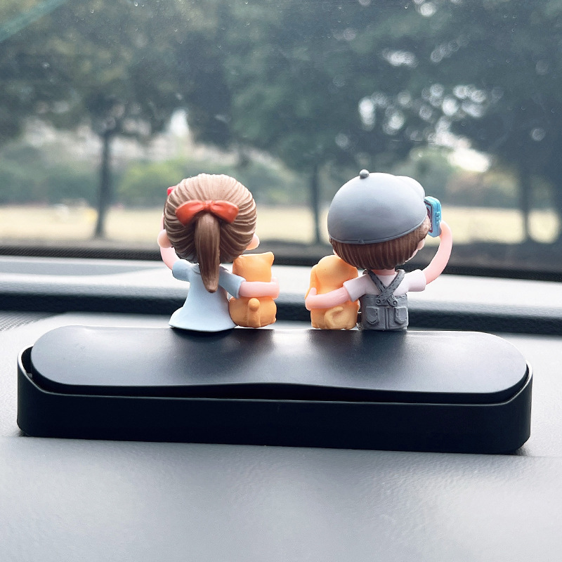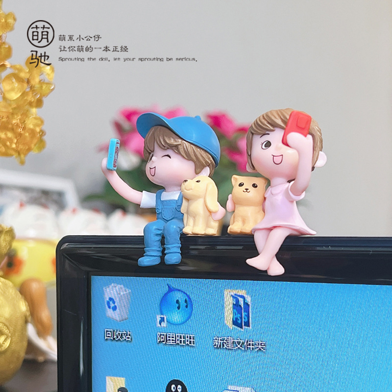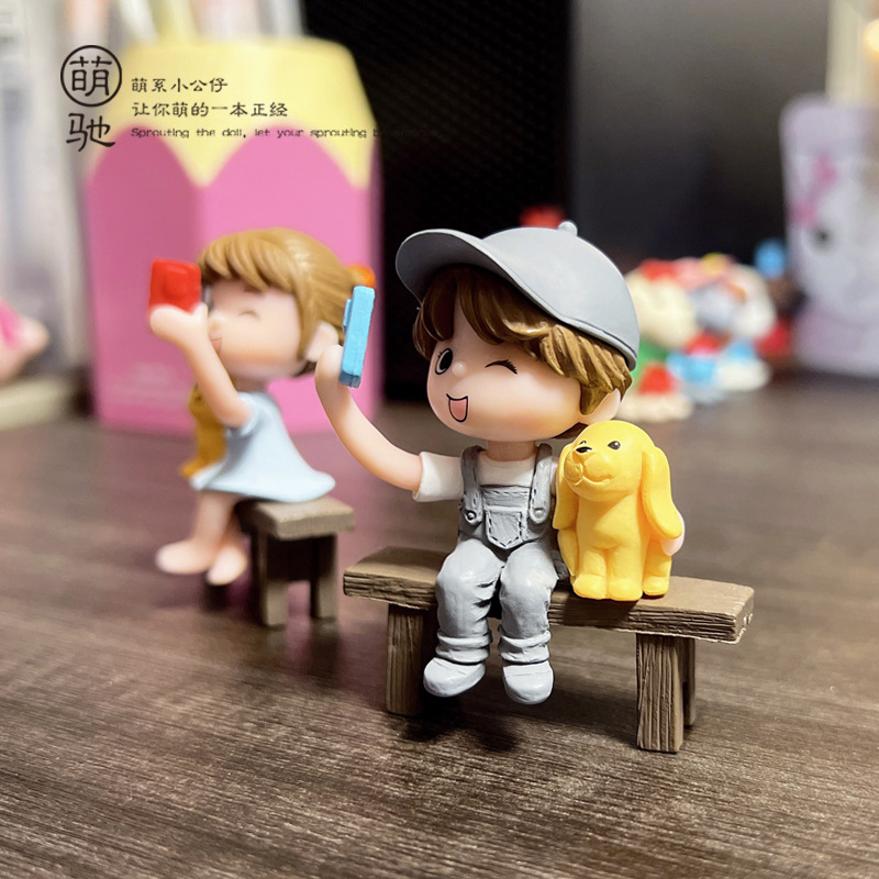 卡通自拍坐凳子小情侣车载创意摆件公仔微景观摆件