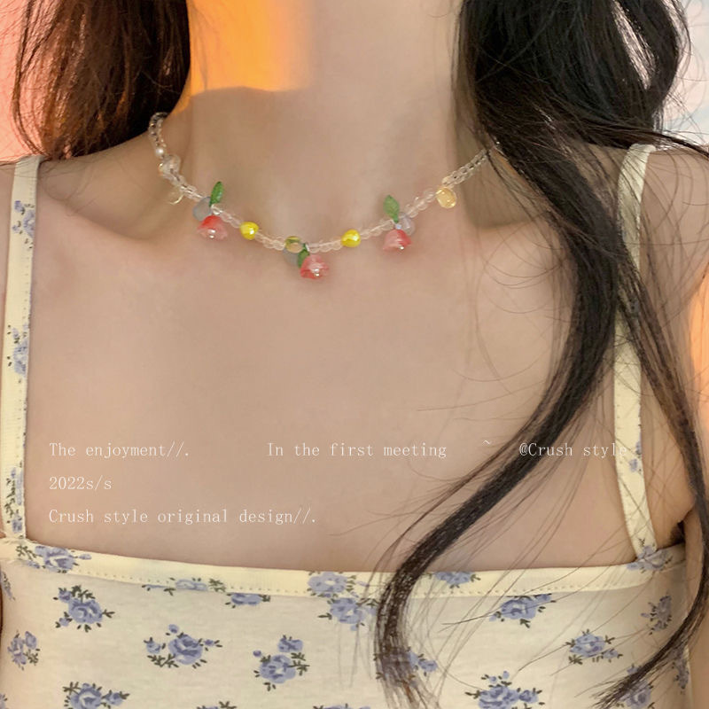 郁金香花朵吊坠项链女夏季气质百搭网红锁骨链ins亚克力串珠配饰