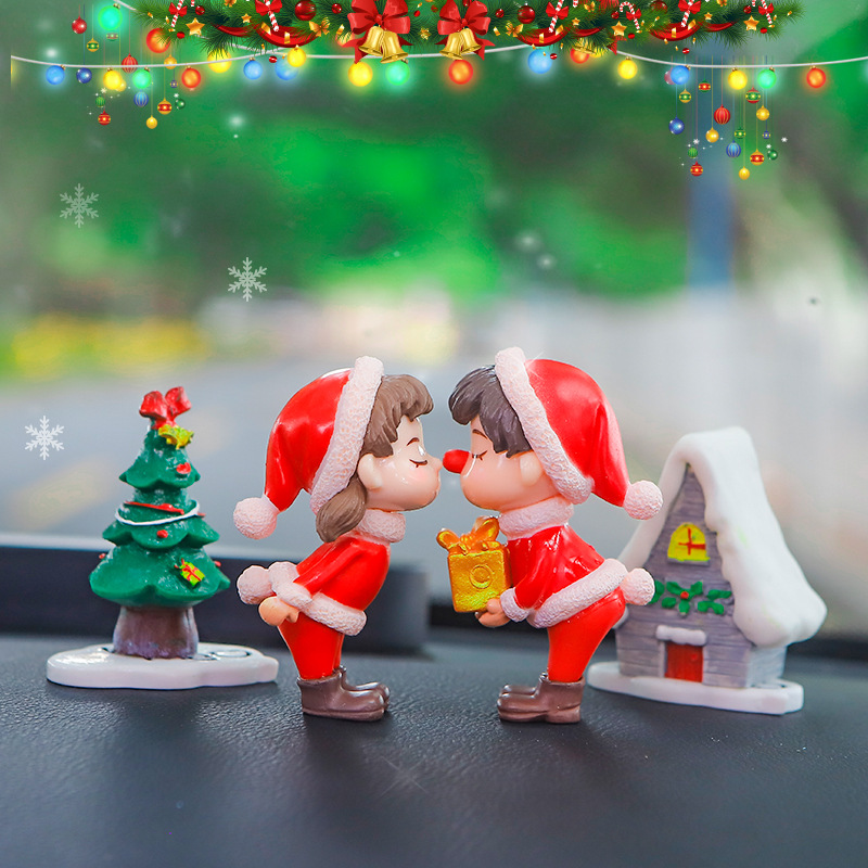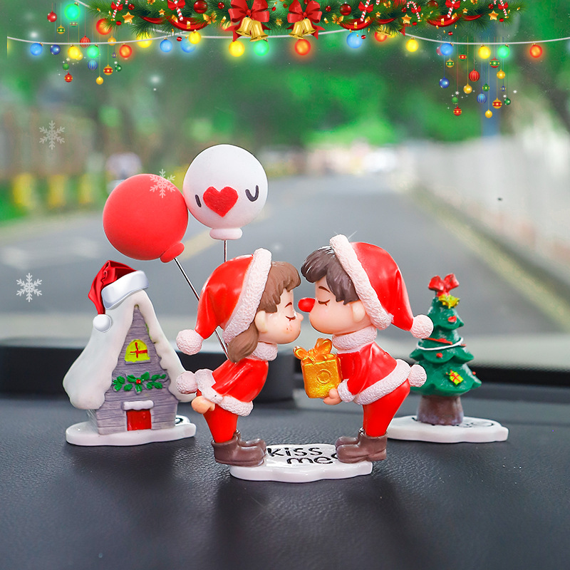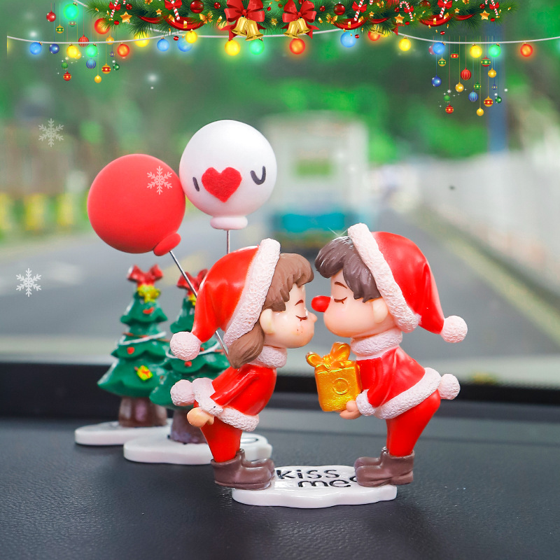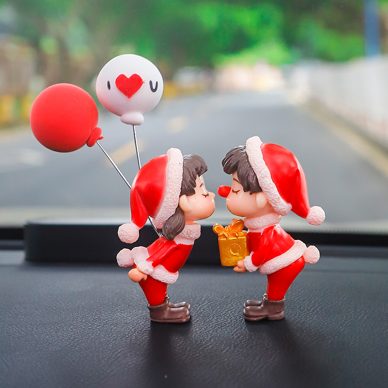 圣诞汽车车载中控台创意可爱情侣小摆件车内装饰公仔礼物桌面摆件