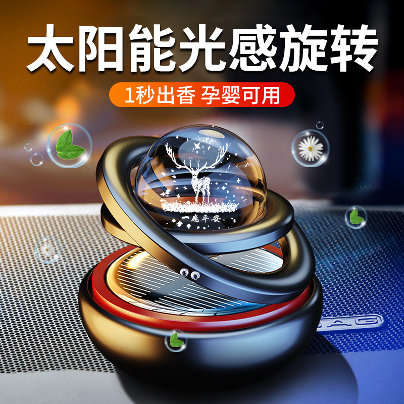 车载香水摆件太阳能双环悬浮高级感汽车创意上档次内装饰品中控台