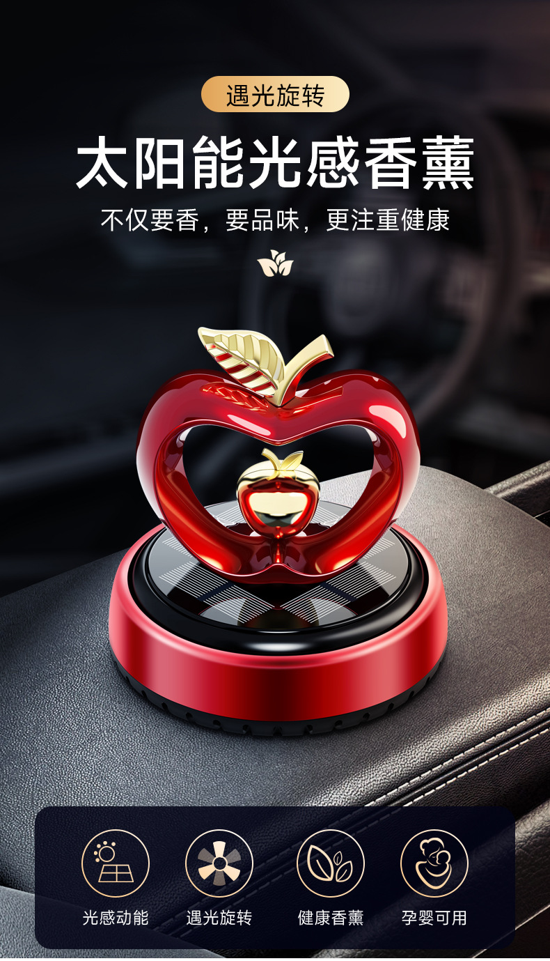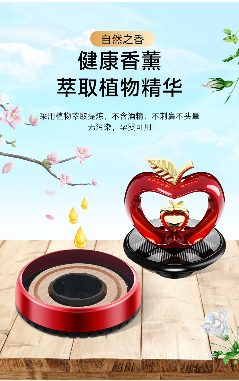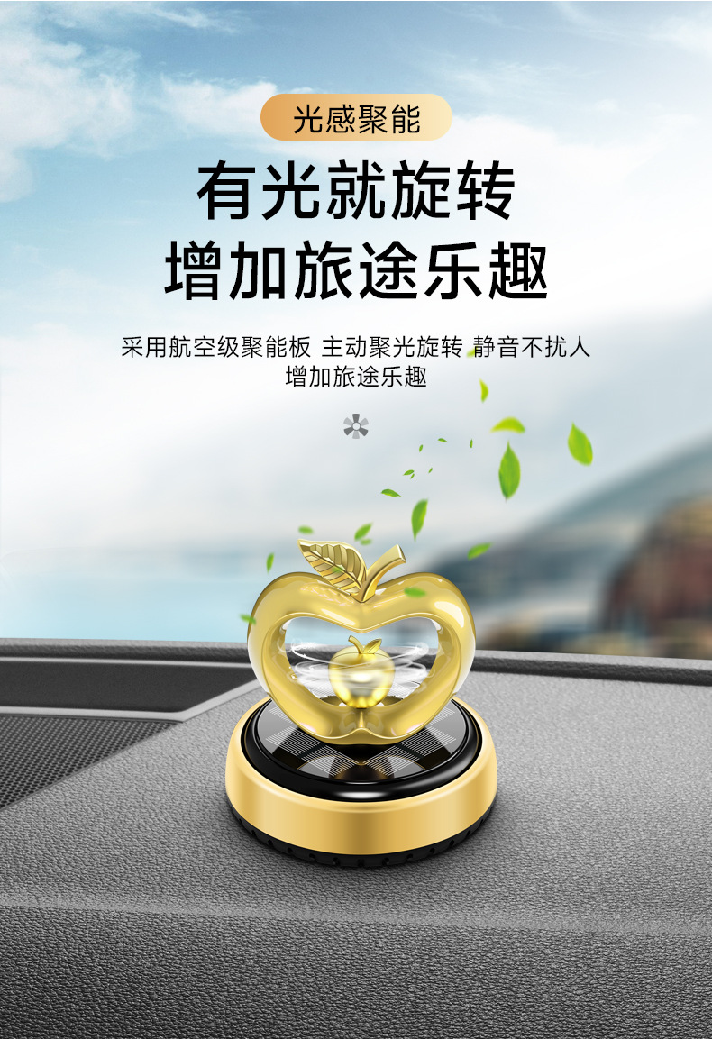 车载香薰汽车摆件香水太阳能中控台苹果心型车用除异味香氛装饰