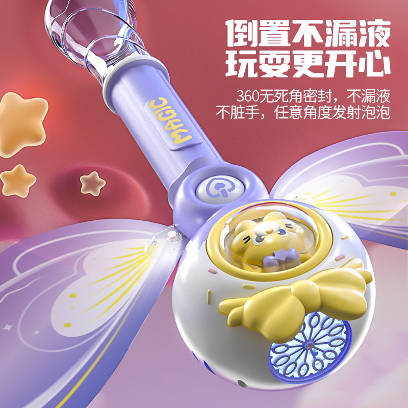 小熊天使泡泡棒紫色【电动出泡+泡泡水+浓缩液60包】送遥控电池