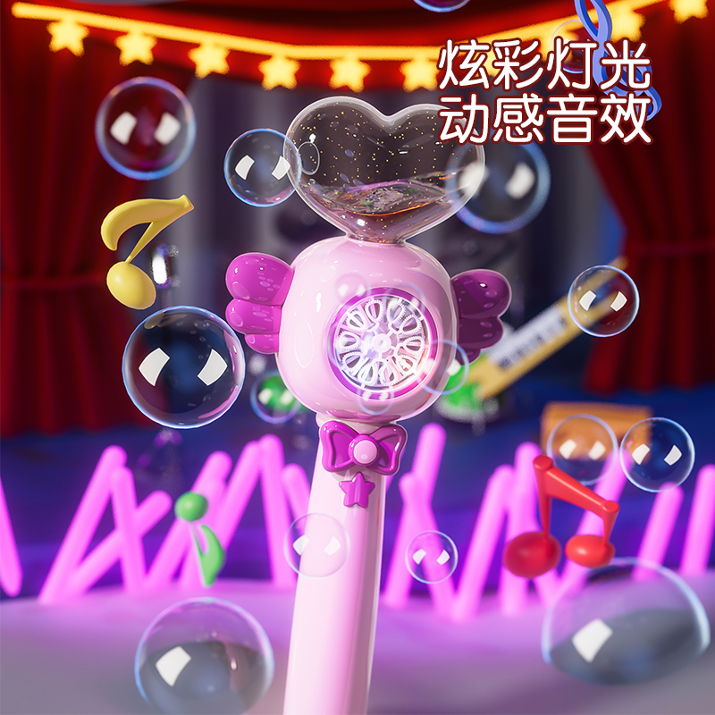 - 【有音乐版本】爱心魔法棒泡泡机【120ml泡泡液+强效电池+20包浓缩液】 【带灯光可续航1小时