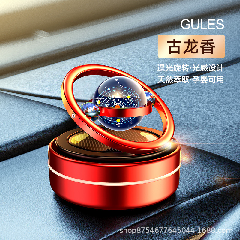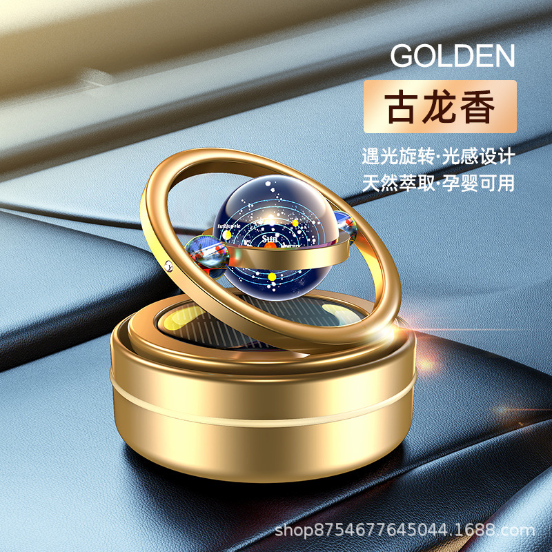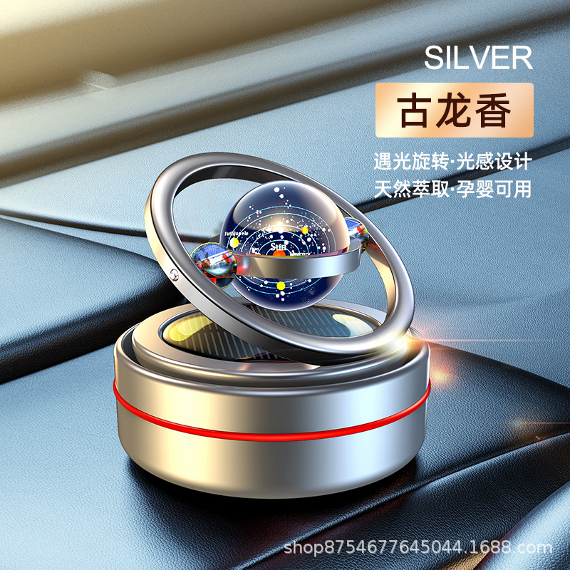 星球太阳能车载香水汽车香薰铝合金双环悬浮旋转摆件