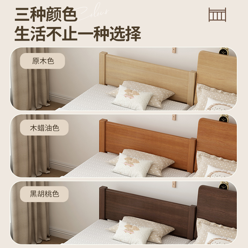 - 实木无床头(原木)-加厚2.5床板-送床垫