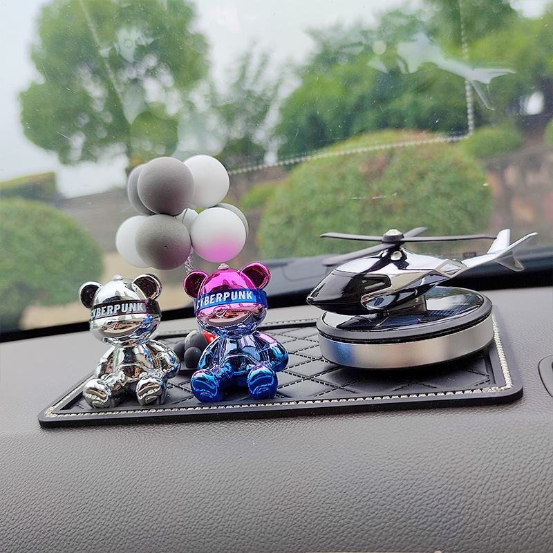 可爱镀金熊车载香水汽车香薰车内除异味持久淡香氛太阳能飞机摆件